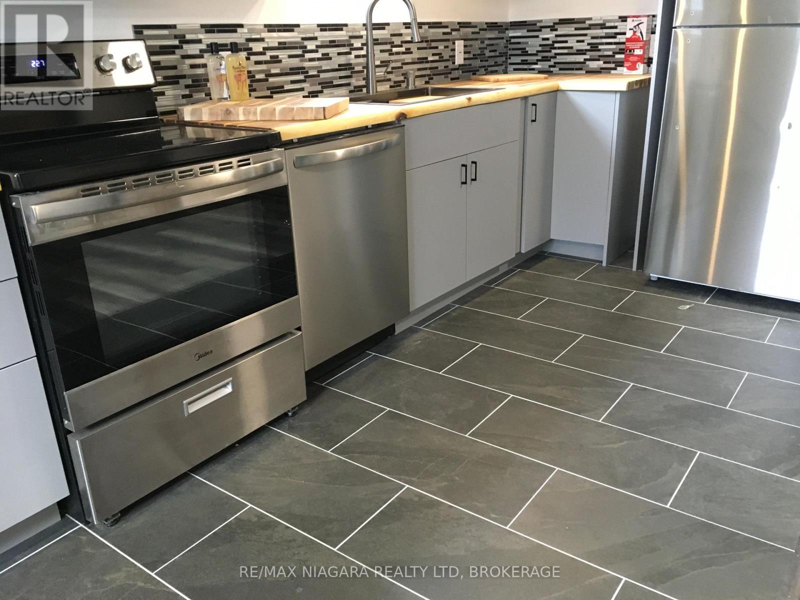 This Modern 1 or 2 Bedroom Lower Level Unit has Private Side Entry and is Newly Renovated Bright and Clean! Open Concept Living Area features Above Grade Windows, allows lots of light, New Vinyl and Tile Floors and a sparkling New Kitchen with amazing Butcher Block counters. Four NEW Stainless appliances and on tap R.O. Water.The main Bedroom Area is a Spacious, Peaceful Escape and perfect for the light sleeper or shift worker. It has a flexible design lay out as a King Sized Bedroom with a Large Walk in Closet that can be used as a Den, Office, Gym or 2nd / Guest Bedroom. This unit has in suite private Laundry Facilities, On Site Storage available, includes outdoor Lawn Maintenance and Snow removal and there is really no better option for a Single, Empty Nester or Seniors. Maintenance Free Living with a House and Yard! The owner is even planning a large deck, hot tub, BBQ Pit and landscape for the backyard. The Home has High Ceilings, Sound Deadening Insulation throughout and Black Out Blinds, Paved Parking, Forced Air Heat and Central Air Conditioning. Resort Like – Fresh and Healthy Whole Home Soft Water and Alkaline Water on Tap.The wide Pie shaped lot is mostly privacy fenced and the Property is perfectly situated at the back end of a quiet, low traffic Crescent. A newer subdivision located in the North End of Niagara Falls and conveniently close to highways, shopping, bakeries and banks, walking paths and fantastic Alpine Park ! The only other tenant in this building is the owner, a single Day worker who will occupy one of the only two units and looking for a tenant/s who appreciates a little peace and quiet. In addition to rent Tenant pays 1/2 utilities and rent includes lawn maintenance and snow removal. Add $53/mo for ensuite laundry machines , Add $100/mo for access to storage in Attached Garage, Add $100/mo for Steel Storage Container (13×7 – better than self storage unit and it is right on site) (id:20029)