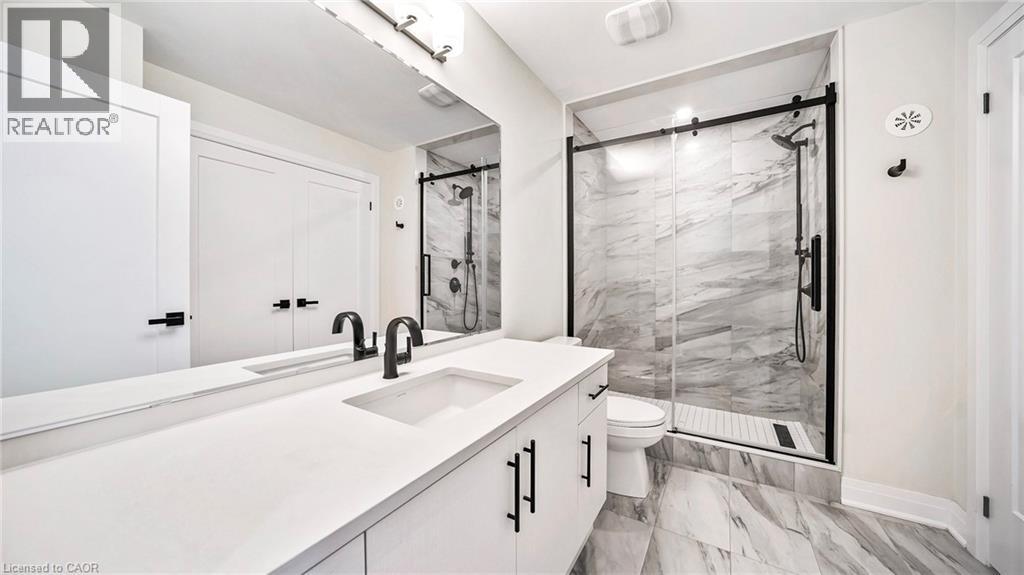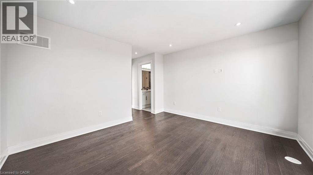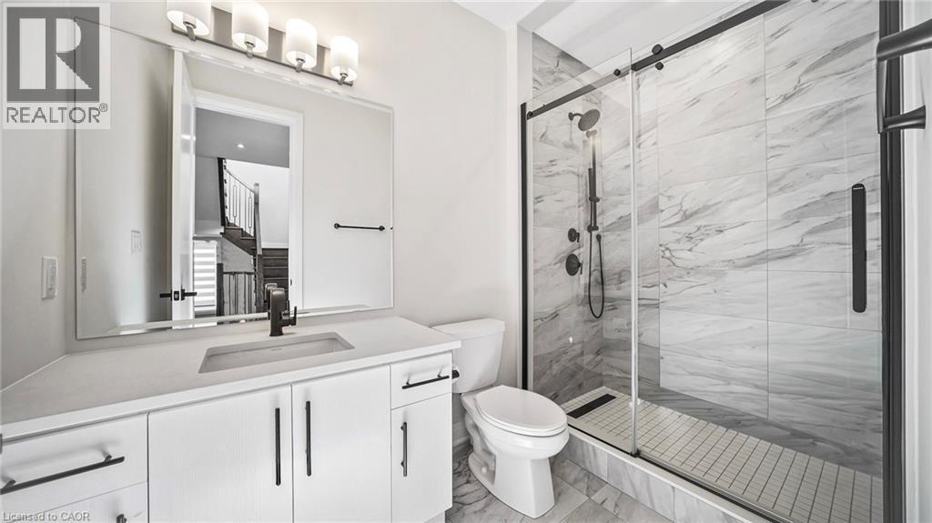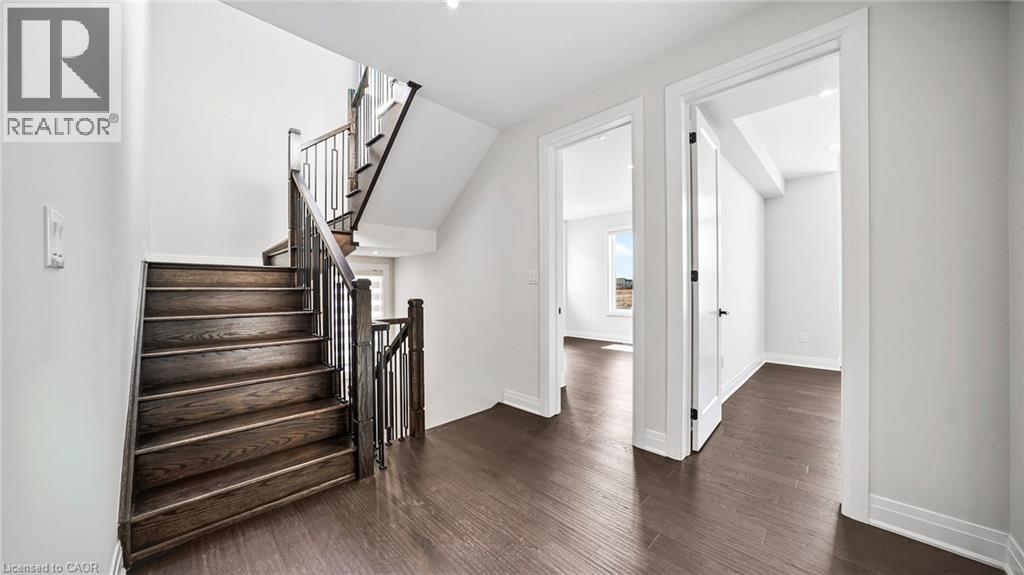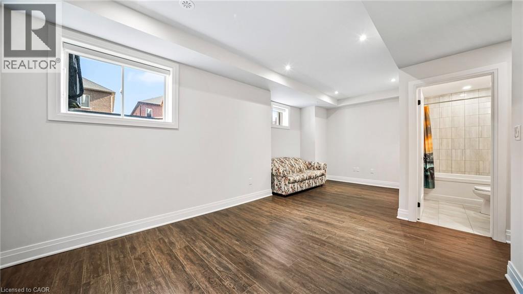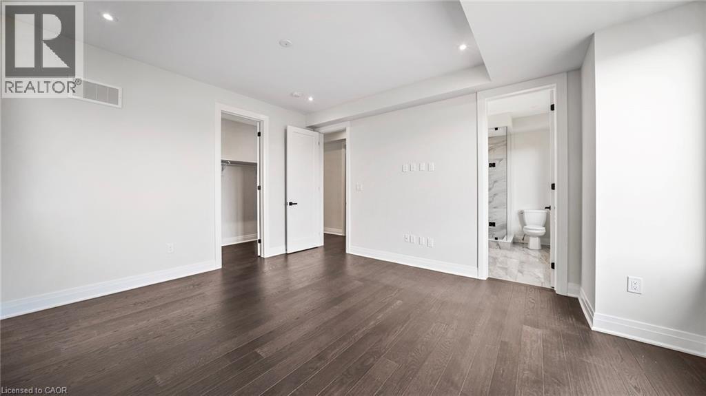 Beautiful one-year-new end unit townhouse, impeccably maintained and move-in ready. The main floor features an open-concept kitchen, a bright living room with a walkout to the backyard deck, and abundant natural light throughout. The second floor offers three spacious bedrooms, including a primary suite with a 4-piece ensuite and walk-in closet, plus a conveniently located laundry room. The third floor includes an additional bedroom with its own 3-piece ensuite, walk-in closet, and open balcony — perfect for guests or extended family. The finished basement adds a cozy recreation room and a 3-piece bathroom, providing plenty of extra living space. Located in the heart of a preserved area with easy access to Hwy 407 and William Halton Parkway. Close to Walmart, Fortinos, Sixteen Mile Sports Complex, and other local amenities. Looking for AAAA tenants who will appreciate and care for this exceptional home. (id:20029)