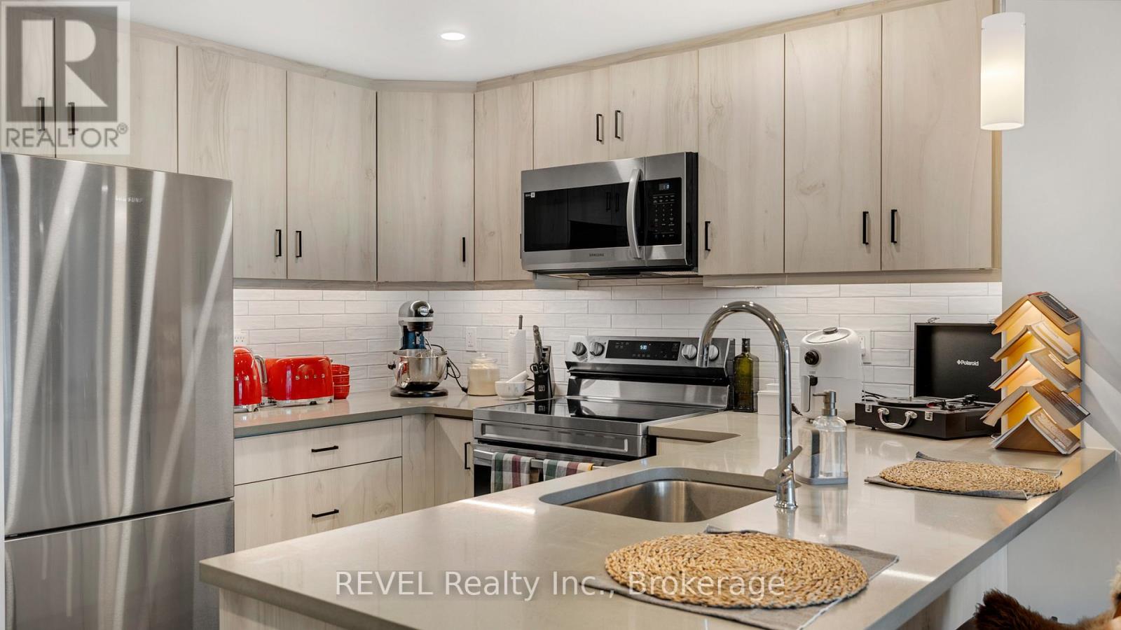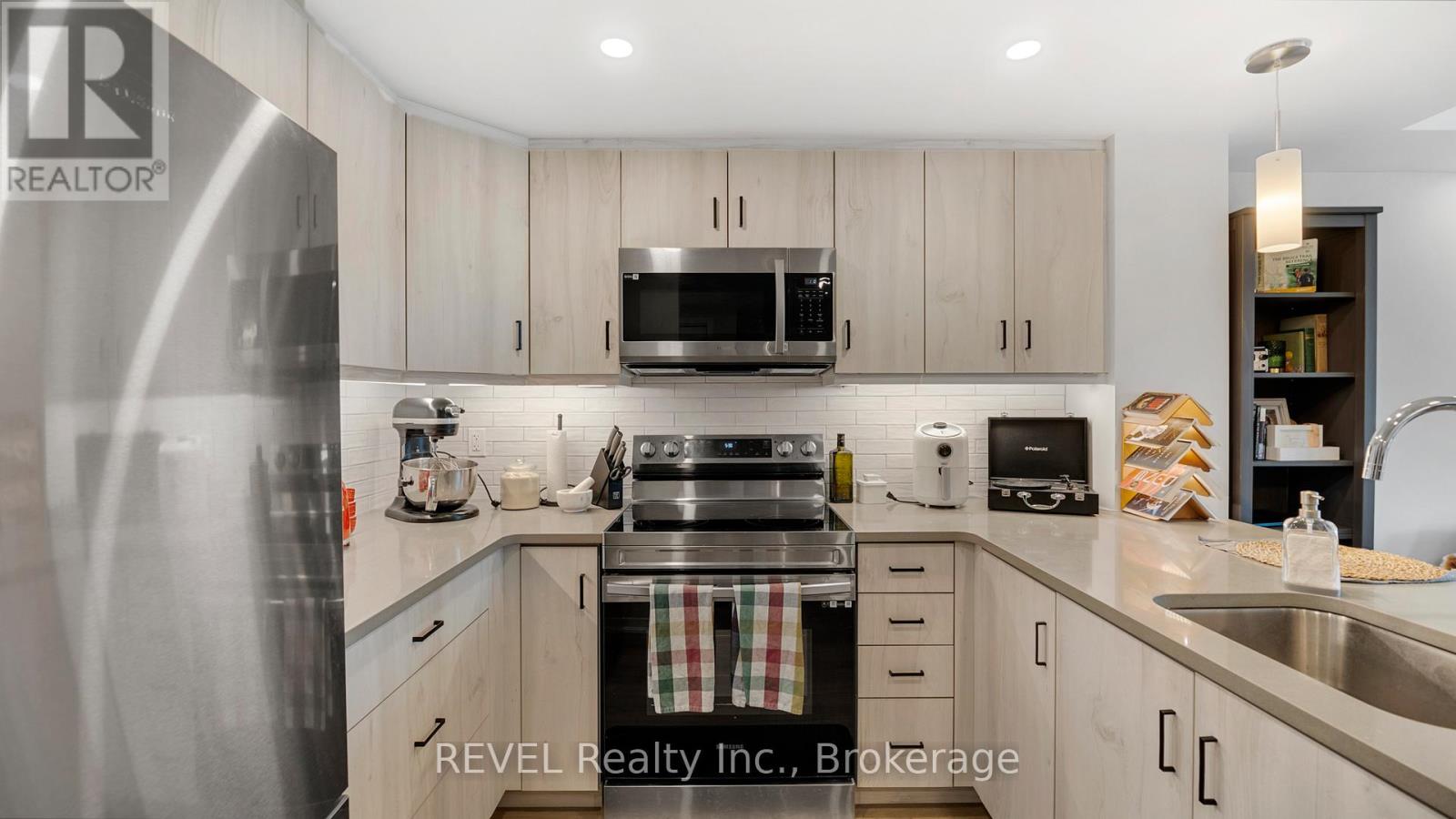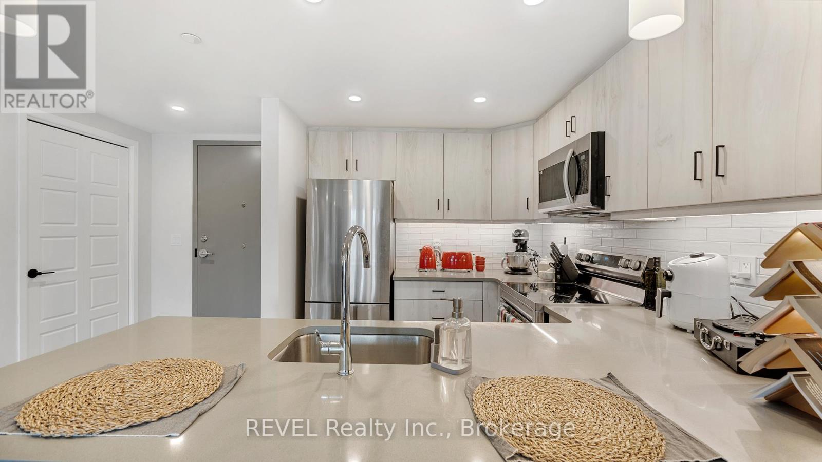 Welcome to unit #106 at Adelaar, a 4-storey luxury condominium built by Lincoln Construction! This gorgeous, accessible unit is perfect for commuters, with quick and easy access to the QEW just minutes away. You’ll also find yourself in close proximity to a ton of amenities in a safe & up-and-coming area, making it the perfect choice for those who appreciate the finer things without compromising on convenience. Inside this main level unit you’ll be greeted by the inviting open concept kitchen, complete with a sleek breakfast bar, ideal for morning coffee or hosting friends for dinner. This kitchen features brand-new stainless steel appliances and a chic, clean vibe. Never worry about the hassle of shared laundry facilities again, as this unit comes equipped with its own in-suite laundry & storage. Step outside onto your private patio, the ideal spot to soak in the sun and enjoy a breath of fresh air. 1 accessible parking spot included close to the unit and the building boasts an abundance of guest parking. Within the building, you’ll find fantastic amenities designed to elevate your lifestyle. Stay active and healthy in the exercise room or host gatherings in the stylish party room/lounge, complete with a convenient kitchenette, located on the 4th floor. Don’t miss out – schedule your showing today! (id:20029)