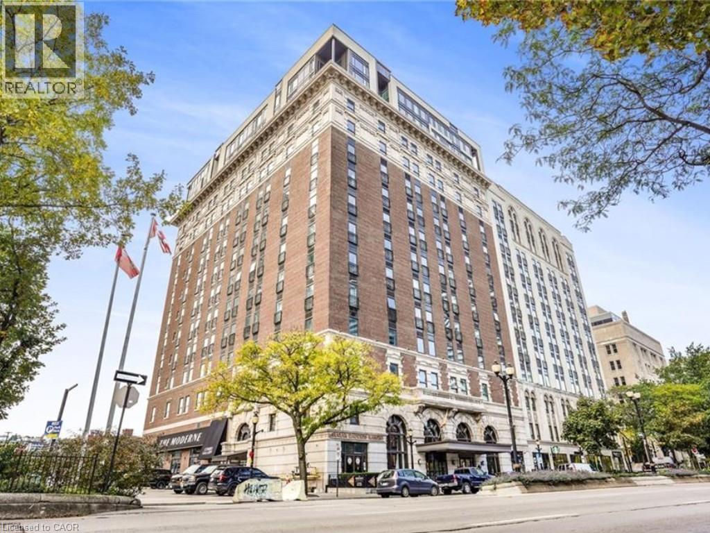Luxury Living at the Royal Connaught! Once host to royalty, prime ministers, and Hollywood stars, this iconic landmark seamlessly blends historic charm with modern style. This 1 bedroom, 1 bath condo rises above King Street East on the 10th floor, offering an unobstructed north-facing view of Gore Park and the Harbourfront, stretching all the way to Toronto. Features include a Juliette balcony, floor-to-ceiling windows, a sleek white kitchen with stainless steel appliances, in-suite laundry, a spacious walk-in closet, owned storage locker, and 1 underground parking space. Residents enjoy first-class amenities: a fitness centre, movie theatre, rooftop terrace with BBQs, elegant event space – and even a Starbucks on site! Step outside to Hamilton’s hottest restaurants and bars on King William, or walk 12 minutes to St. Joseph’s Hospital. You’re also just minutes from the courthouse, McMaster University, and its Health Sciences Centre. Commuters will love the short walk to both Hunter Street and West Harbour GO stations, with all-day service to Toronto. Perfect for professionals, downsizers, or investors seeking a turnkey lifestyle in the heart of Hamilton. (id:20029)