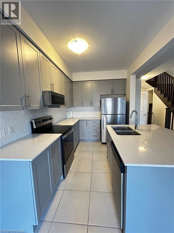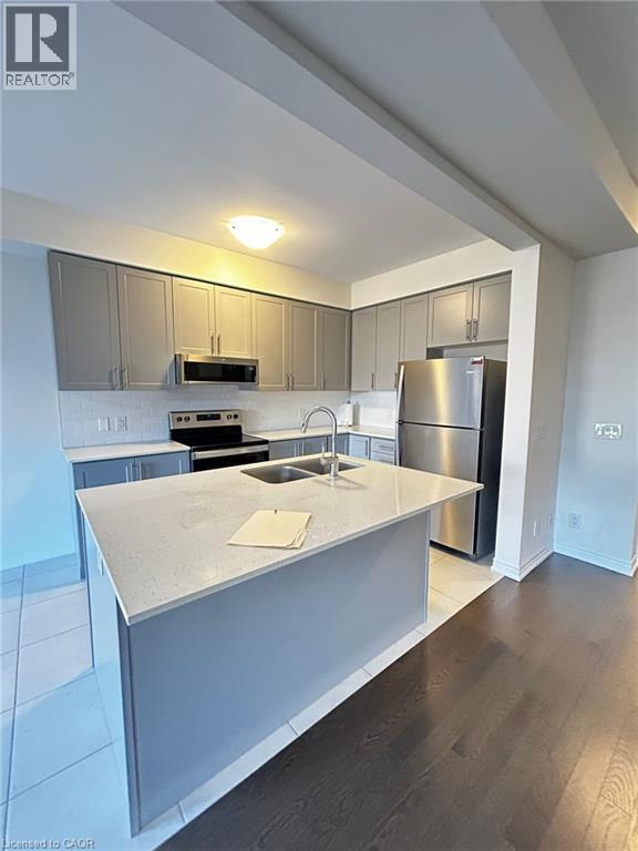 Welcome to 123 Broadacre Dr, Kitchener, a stunning end-unit townhouse available for lease in the highly desirable Huron Park neighborhood. This nearly new home offers modern elegance with hardwood flooring throughout the main floor, creating a seamless and sophisticated living space. The open-concept design features a chef-inspired kitchen with brand-new stainless steel appliances, sleek granite countertops, stylish cabinetry, and a spacious center island, perfect for both meal preparation and casual dining. Adjacent to the kitchen, the walkout deck provides a serene outdoor retreat for relaxation and entertaining. Upstairs, the primary suite is a luxurious escape, complete with a large walk-in closet and a 5-piece ensuite bathroom featuring dual sinks, a soaker tub, and a glass-enclosed shower. Two additional spacious bedrooms share a beautifully designed 4-piece bathroom, making this home ideal for families. The fully finished basement extends the living space with a large recreation room, a modern 3-piece bathroom, and extra storage, along with convenient in-unit laundry facilities. An attached garage and private driveway provide ample parking, while the home’s prime location ensures easy access to top-rated schools, shopping centers, and major highways. To enhance comfort, the landlord will provide a water softener, and AAA+ tenants with a strong credit score are preferred. This exceptional home is move-in ready—book your showing today! (id:20029)