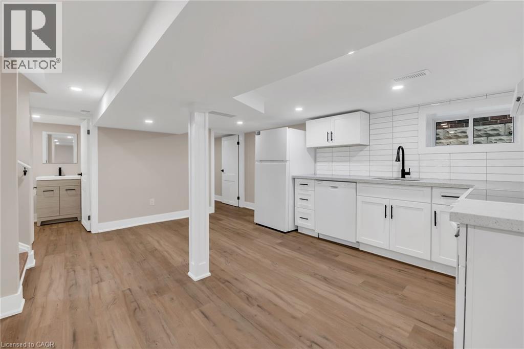 For Lease – 1 Bed, 1 Bath Lower Unit with In-Suite Laundry….This fully finished, in-law-suite–ready basement apartment features its own private side entrance and a beautifully designed custom kitchen complete with quartz countertops, undermount sink, stylish backsplash, and pot lights. The open-concept layout flows into a spacious living room, creating a warm and comfortable living space. The unit includes a large bedroom, a modern 3-piece bathroom, and private in-suite laundry for added convenience. Perfect for a single professional or couple, this suite offers comfort, privacy, and contemporary finishes throughout. Located in a quiet, family-friendly neighborhood close to transit, shopping, parks, and other local amenities. (id:20029)