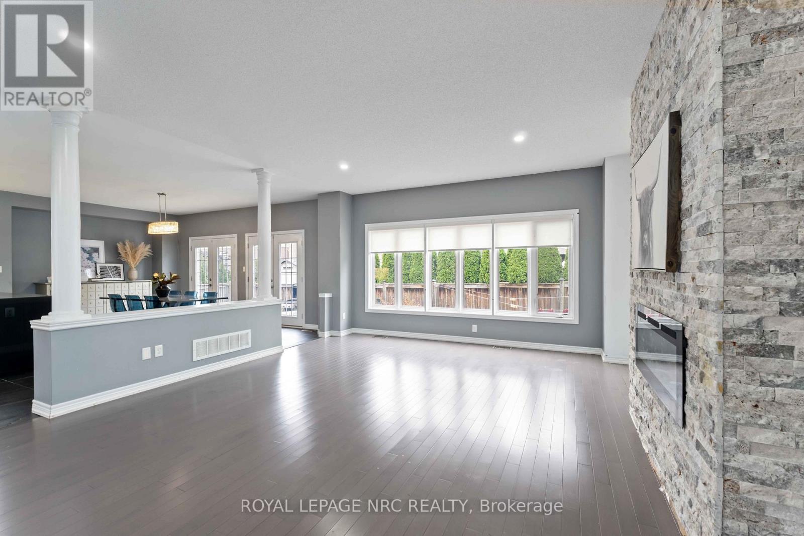 Discover this stunning Landmart-built “Shakespeare” model offering over 3,380 sq. ft. of luxurious living space. Designed for comfort and style, this 4-bedroom, 3.5-bath home features elegant finishes, hardwood flooring, and a modern open-concept layout perfect for family living and entertaining.The main floor welcomes you with a spacious foyer, rich midnight-grey tile, and a gourmet kitchen featuring cream cabinetry with under-mount lighting, granite countertops, stainless steel appliances, a GE Monogram gas stove, and a large island with breakfast bar. Enjoy an open-concept living area with an electric fireplace and feature wall, a formal dining room, and a cozy den. The main-floor laundry and double garage with inside entry add convenience.Upstairs, the primary suite includes two walk-in closets with built-ins and a luxurious 5-piece ensuite with double sinks, a soaker tub, and an oversized shower. Three additional bedrooms include one with its own ensuite and vaulted ceiling.The unfinished basement with high ceilings and rough-in plumbing offers excellent storage and future potential. The pie-shaped, fenced lot provides privacy and ample outdoor space for family enjoyment.Located in a quiet, desirable neighbourhood, this elegant home combines timeless design with modern living – the perfect choice for those seeking upscale comfort and everyday convenience. (id:20029)
