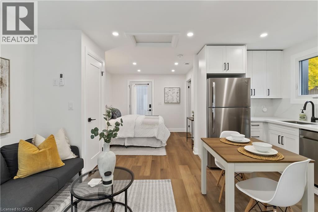 Step into 2 – 1332 Majestic Drive and experience the perfect blend of modern design and cozy comfort. This fully updated garden suite feels like a hidden gem with sleek finishes and an airy, open-concept flow that keeps the space bright and inviting. At the heart of the home, a stylish, contemporary kitchen opens seamlessly into the living area, creating a comfortable layout perfect for everyday living. Enjoy your morning coffee at the counter, unwind in the cozy living space, or simply relax with the comforts of a home designed for both efficiency and style. With in-suite laundry and use of a portion of the backyard with space to unwind, this suite balances function and flair effortlessly. Tucked into a quiet Burlington neighbourhood yet moments from highways, trendy shops, cafés, and waterfront trails, it offers the best of both worlds — city convenience with suburban calm. Perfect for those who appreciate style, simplicity, and smart living. (id:20029)