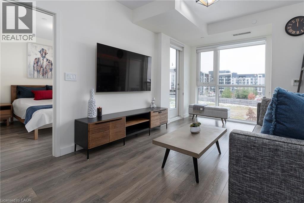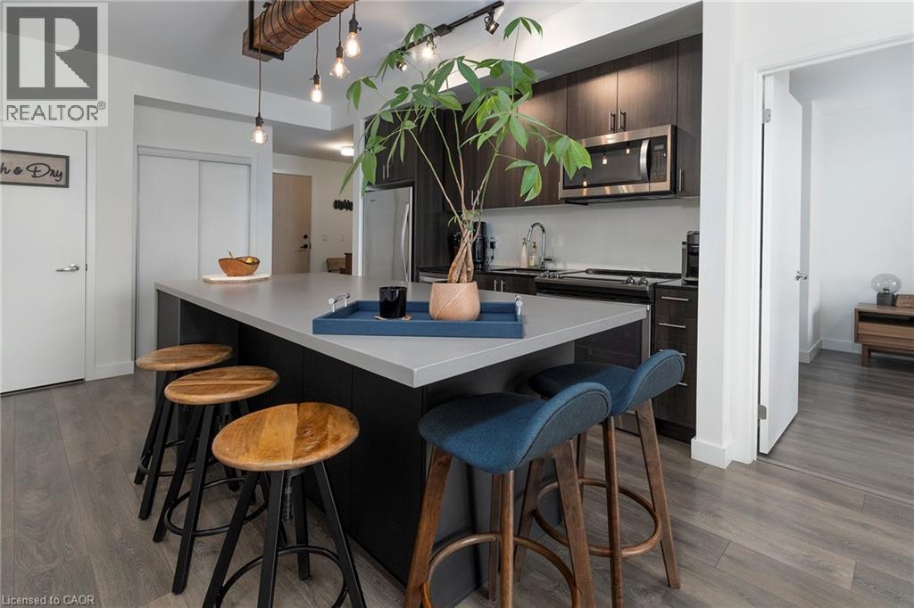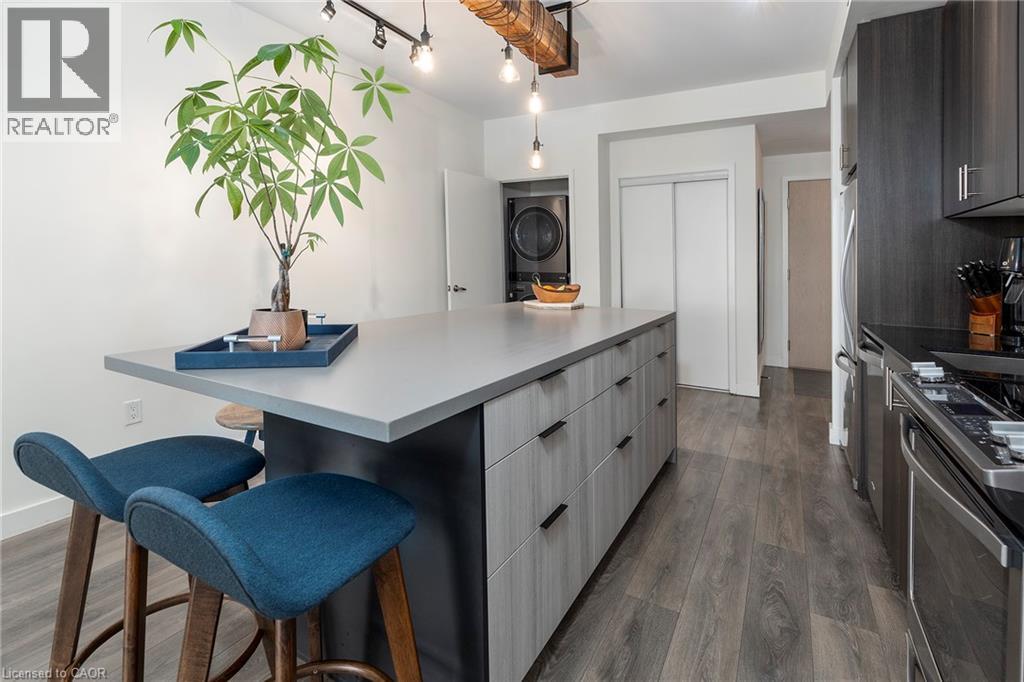 Looking for HIGH END/LOW MAINTENANCE LIVING close to ALL CONVENIENCES this is the one for you!!! This beautifully designed home offers a great layout and plenty of space and exudes natural light with the west facing location. The open concept living is ideal for entertaining family & friends. The Kitchen is the ultimate WOW factor offering S/S appliances, modern cabinets and an amazing large custom island offering plenty of seating and storage & art piece style light fixture above island. The spacious bedroom offers black out blinds offering you a great nights sleep. This unit also offers a bonus den, the convenience of in-suite laundry w/new front loading washer/dryer combo and a modern 4 pce bath. This great unit also offers a covered balcony to enjoy your morning coffee or evening wine. Added features to make this an even more comfortable and convenient living space are the blinds on all windows and doors, upgraded dimmers on the light switches that can be controlled through Alexa & Google & updated closets. You can save on a gym membership with the nicely equipped in-house gym, locker for all your storage needs, not all units offer this great feature, bike parking, underground parking, party room & media room. Need another reason to call this one HOME it is the Uptown Oakville location close to all highways, public transit including the Go and ALL other amenities!!! (id:20029)
