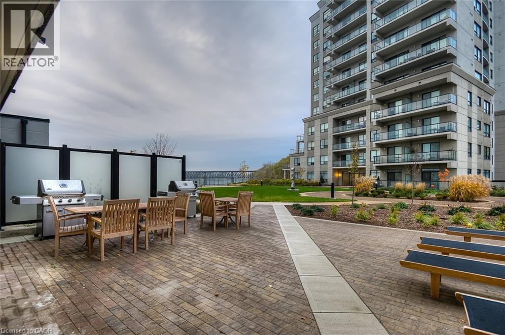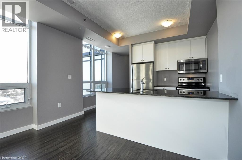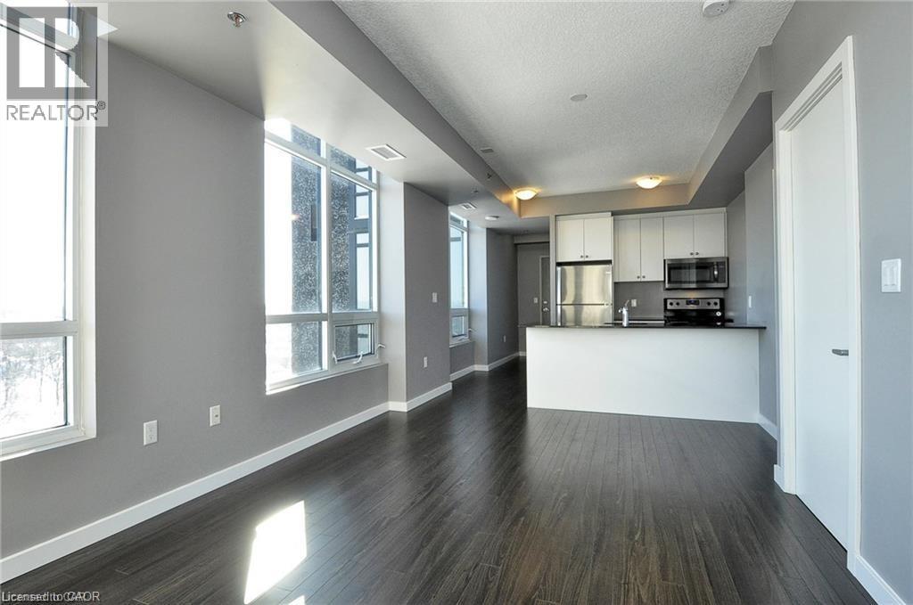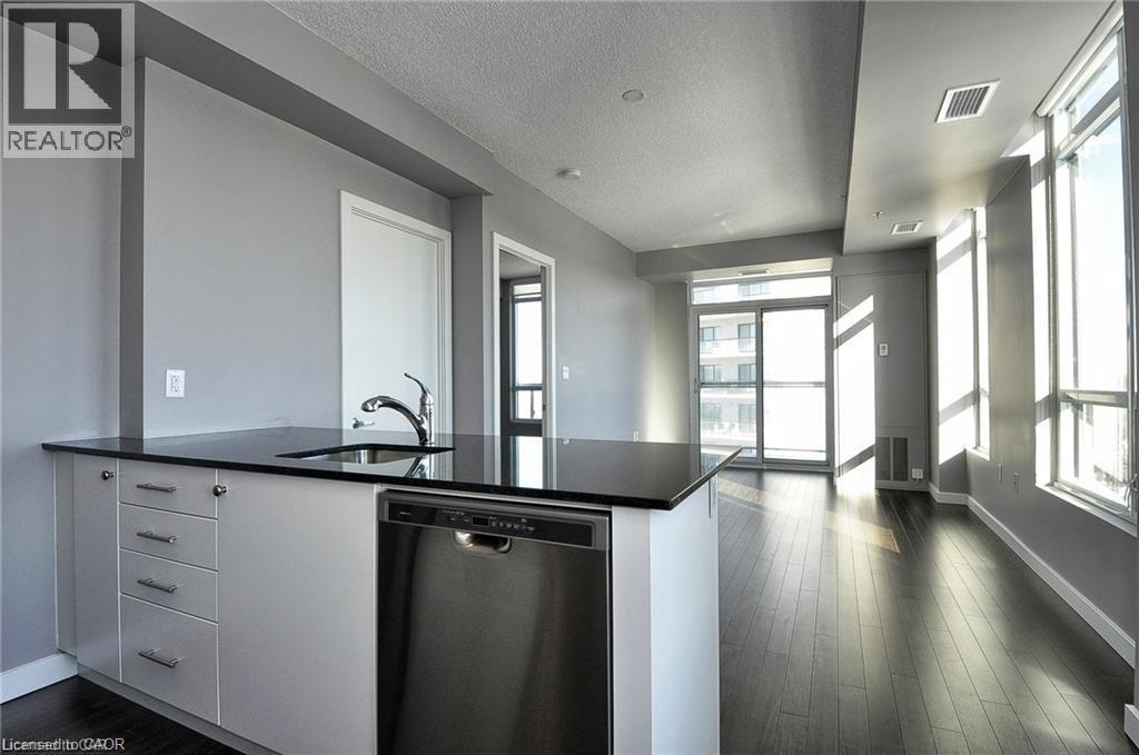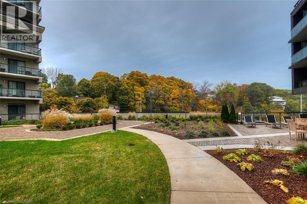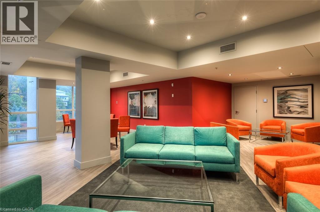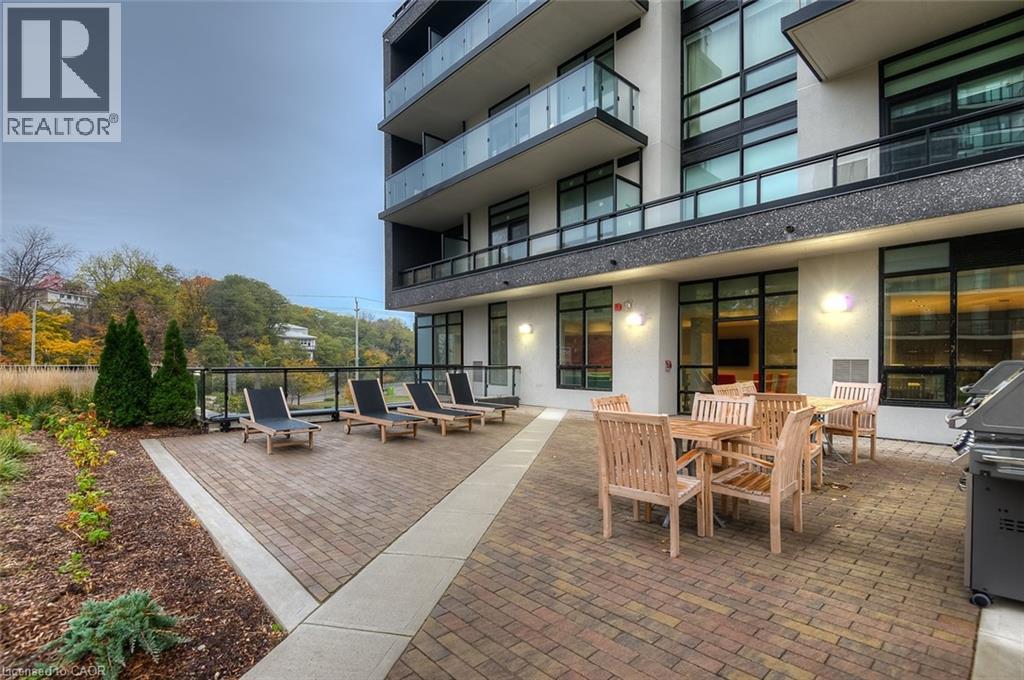This Stunning 1 bed 1 bath corner end unit offers stunning picturesque views of the Grand River from the 105sq.ft balcony. Additional large airy windows also give you views of the gardens and street, this unit is really a must see to appreciate it. This unit offers laminate flooring, granite countertops, SS appliances and separate storage/laundry room that contains a stackable washer and dryer leaving plenty of room for your storage needs. 2 seperate owned parking spots come with this unit, 1 underground and 1 at the front of the building. A Storage locker, gym and party room round out the added features included. You will be steps away from Shopping, restaurants, trails and the Hamilton Family Theater. (id:20029)