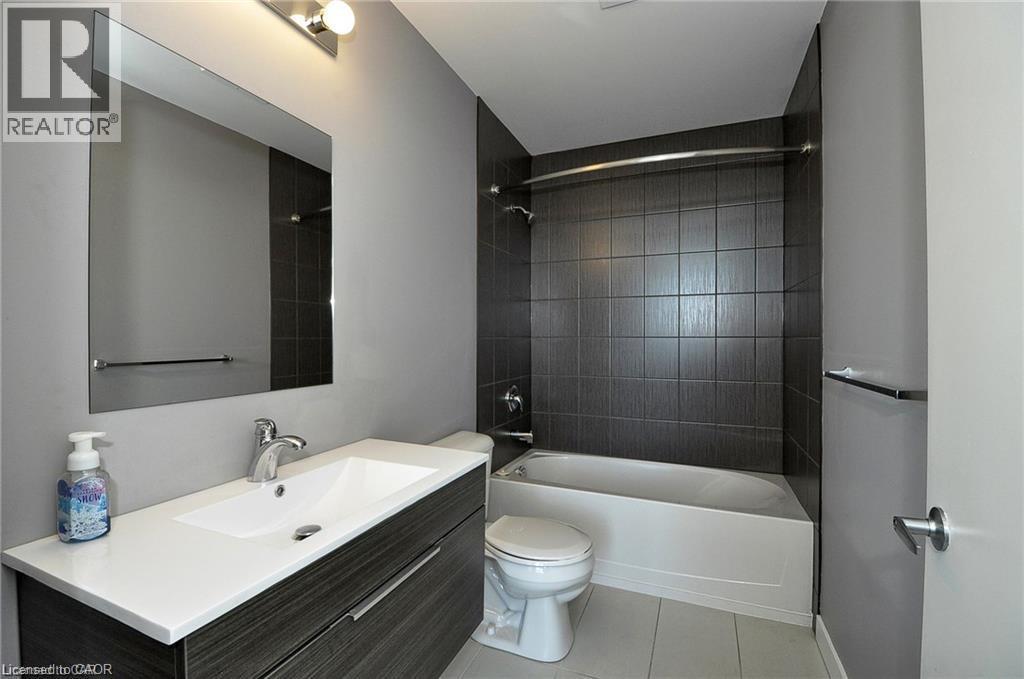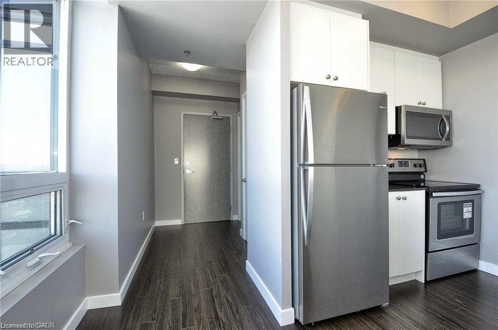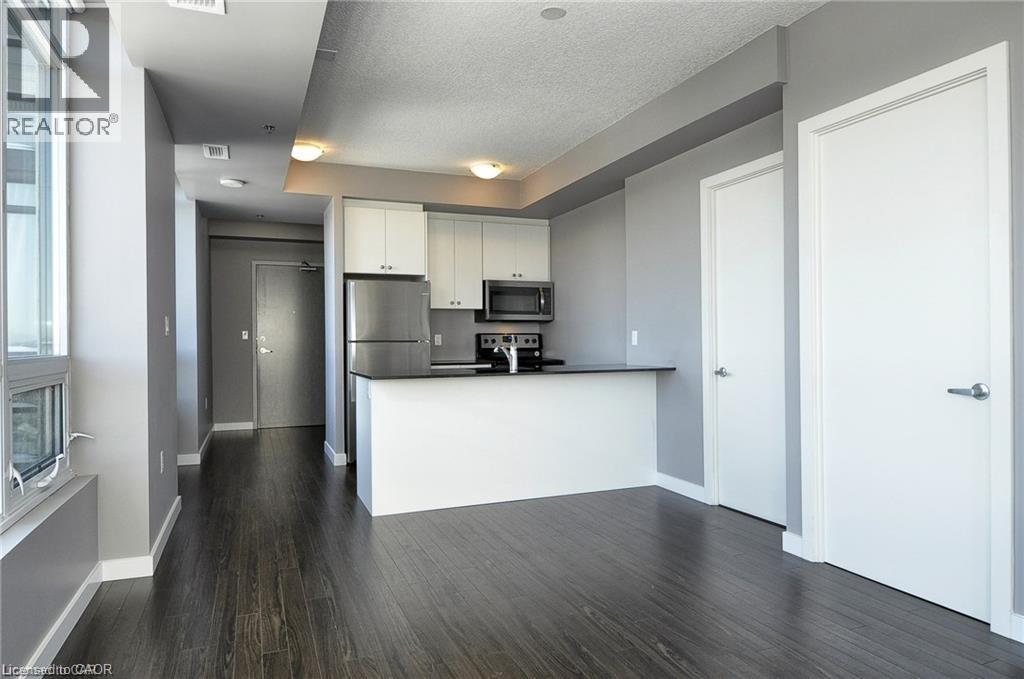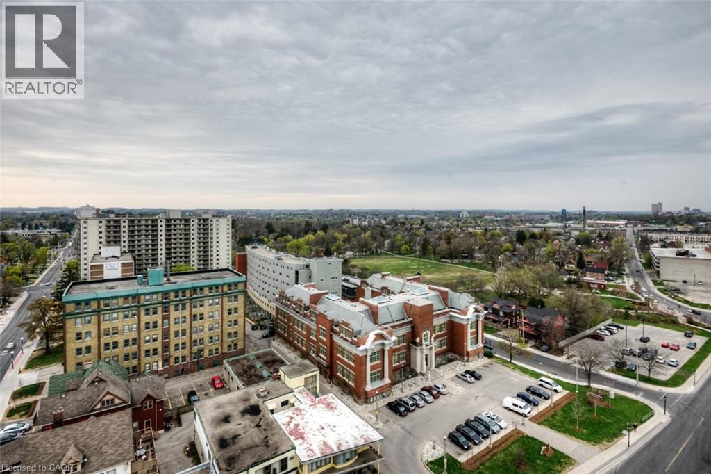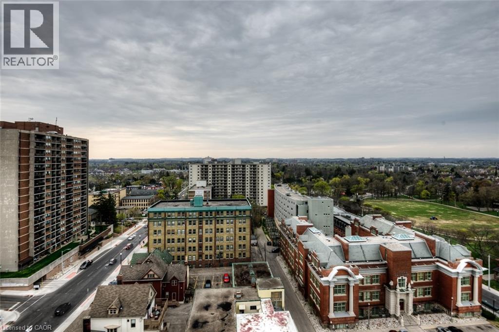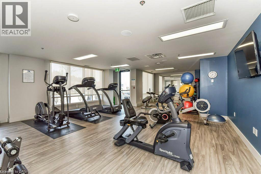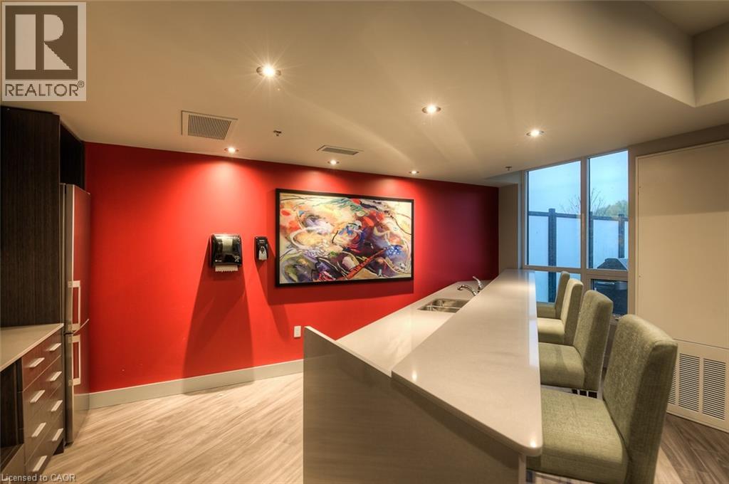 This Stunning 1 bed 1 bath corner end unit offers stunning picturesque views of the Grand River from the 105sq.ft balcony. Additional large airy windows also give you views of the gardens and street, this unit is really a must see to appreciate it. This unit offers laminate flooring, granite countertops, SS appliances and separate storage/laundry room that contains a stackable washer and dryer leaving plenty of room for your storage needs. 2 seperate owned parking spots come with this unit, 1 underground and 1 at the front of the building. A Storage locker, gym and party room round out the added features included. You will be steps away from Shopping, restaurants, trails and the Hamilton Family Theater. (id:20029)