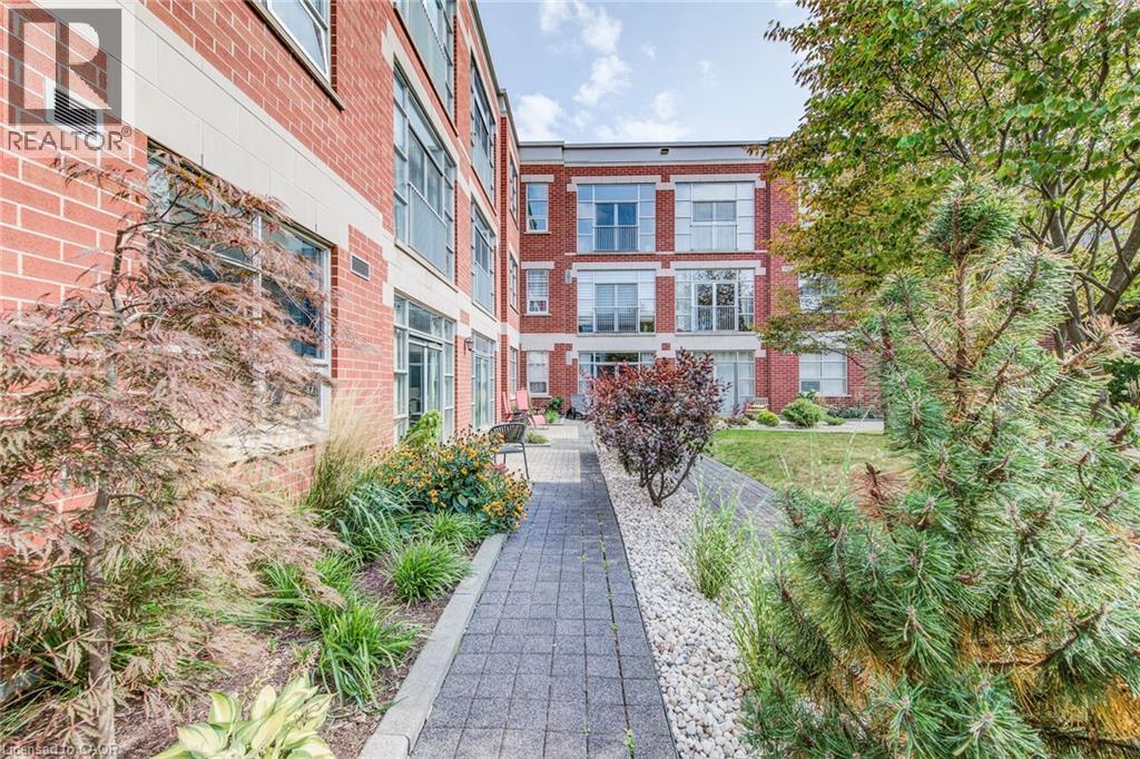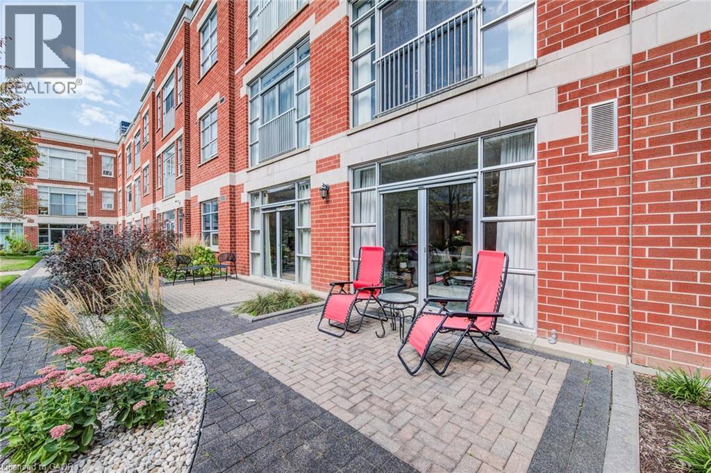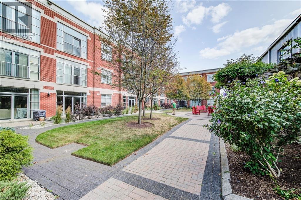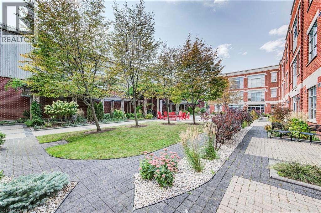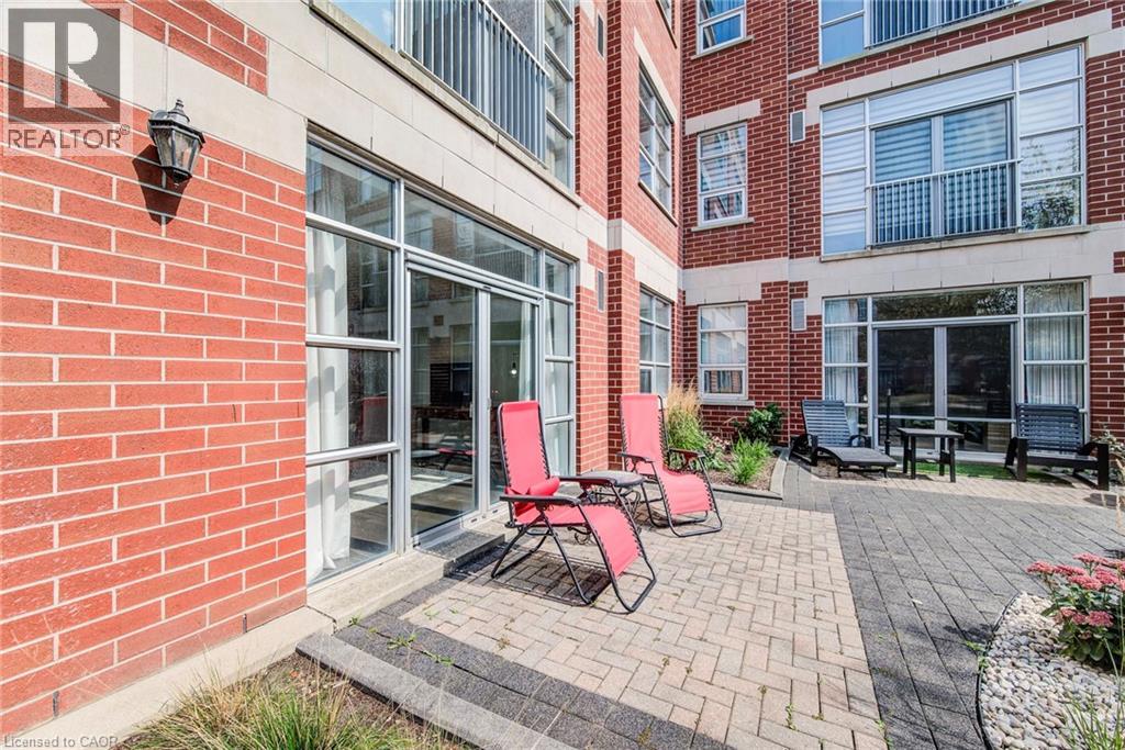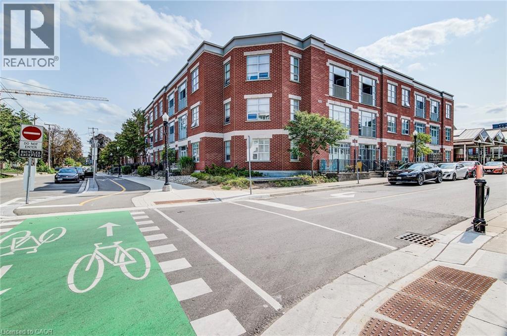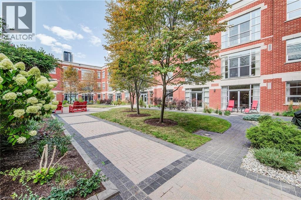 Exceptional executive condo in the sought-after Market Lofts in downtown Kitchener! Offering a care-free lifestyle with an abundance of space, this unique 1-bedroom, 1-bath is sure to impress. The updated kitchen features granite countertops, appliances, and under-cabinet lighting. A generous dining area makes entertaining easy, while the expansive living room boasts hardwood floors, and an abundance of natural light. The luxury primary suite includes a walk-in closet, warm neutral carpet, and the bathroom has a spa-like feel. The unit also has an outdoor patio off an exterior courtyard. Enjoy access to fantastic building amenities, including a private courtyard. Low condo fees cover heat, water, parking, and even window cleaning—making this a true low-maintenance lifestyle. All this in a prime downtown location just steps to the Kitchener Market, LRT, Victoria Park, Google, Communitech, shops, and restaurants. Don’t miss this rare opportunity to own a spacious loft in one of the city’s most vibrant communities! (id:20029)