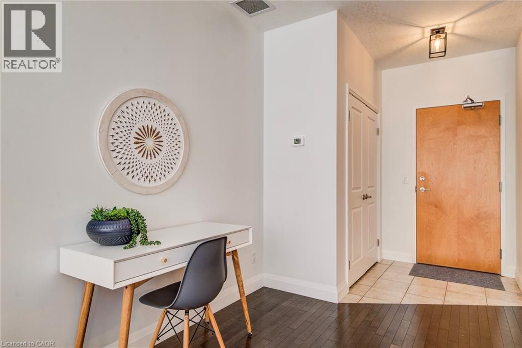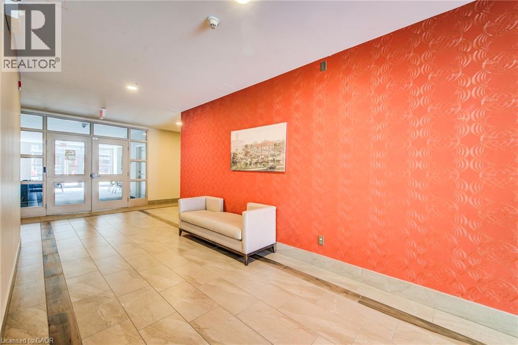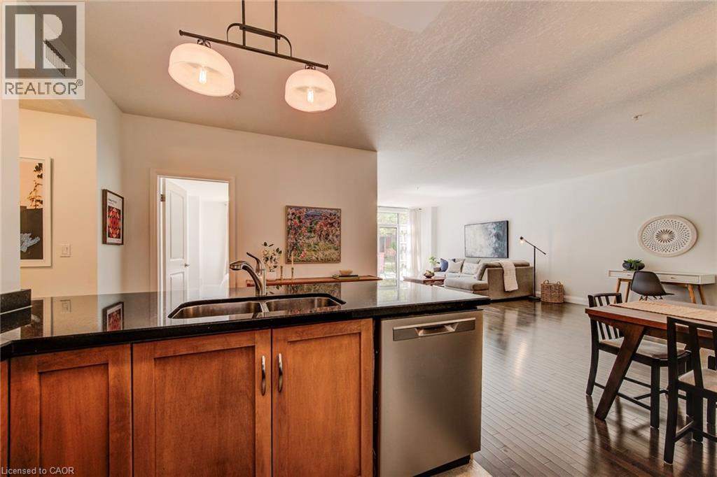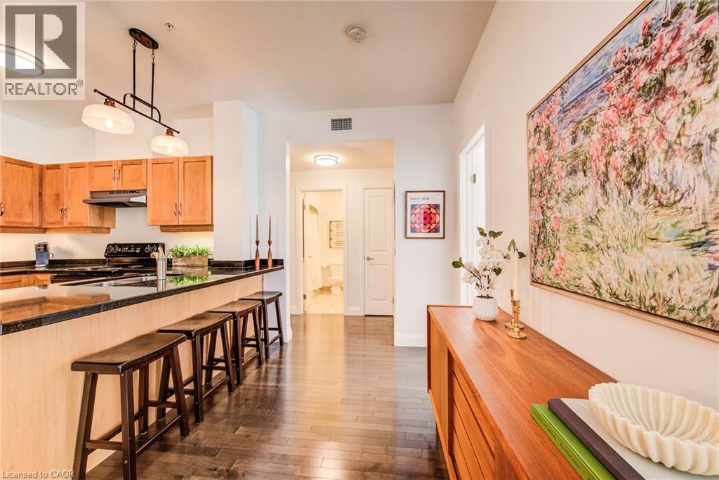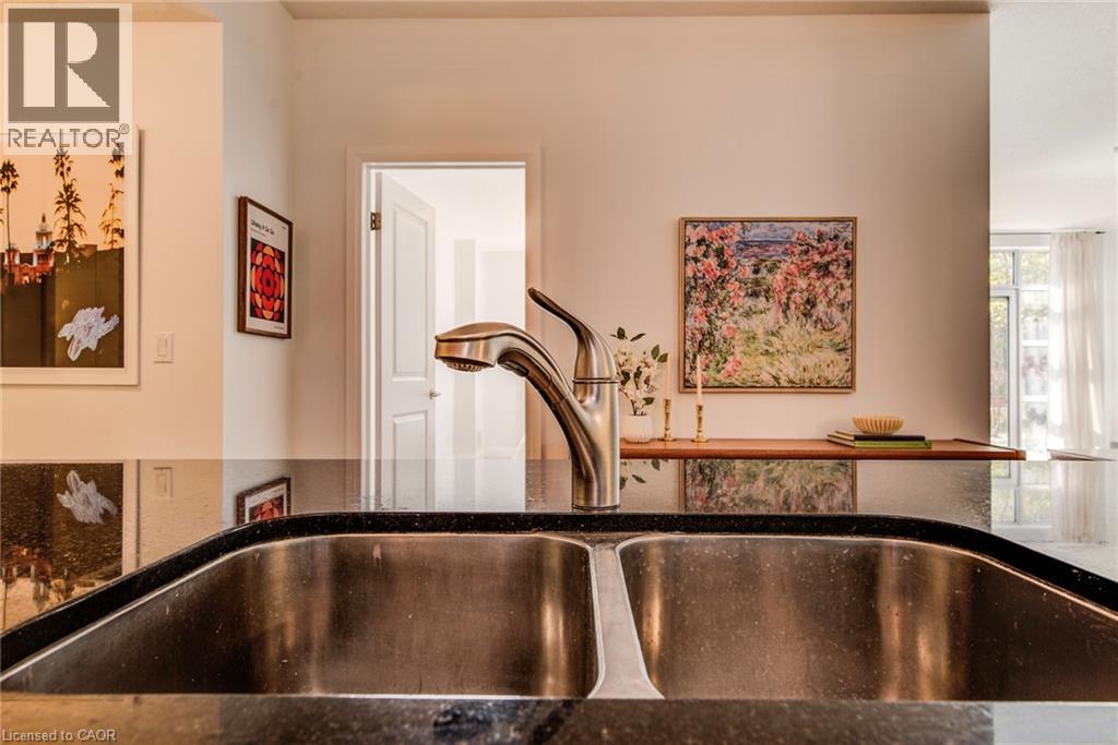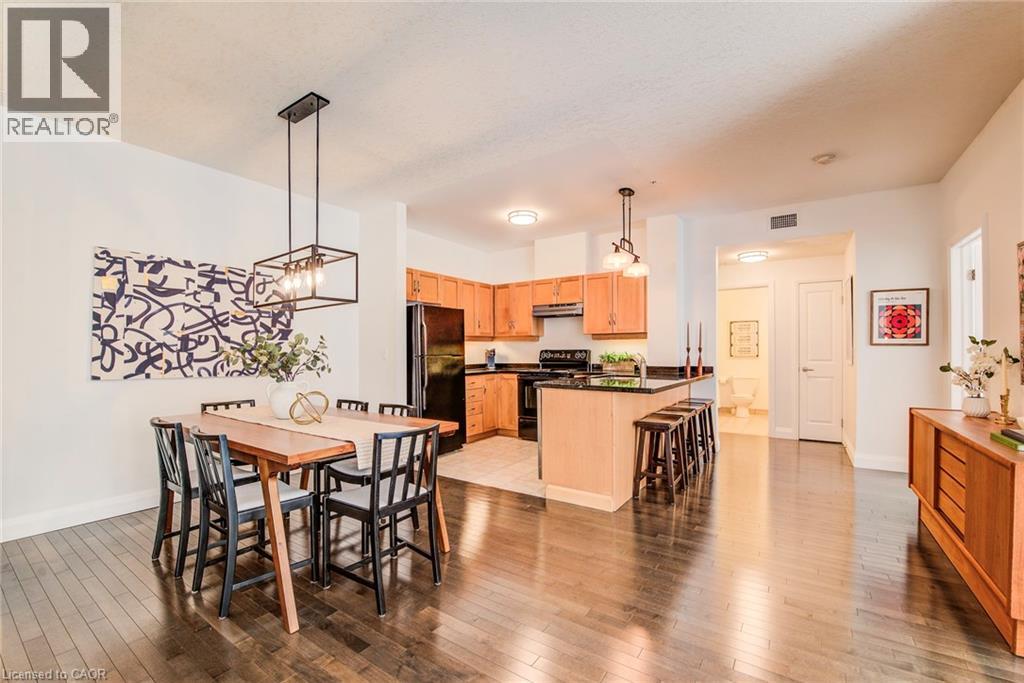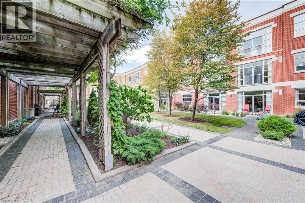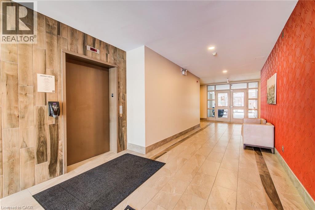 Exceptional executive condo in the sought-after Market Lofts in downtown Kitchener! Offering a care-free lifestyle with an abundance of space, this unique 1-bedroom, 1-bath is sure to impress. The updated kitchen features granite countertops, appliances, and under-cabinet lighting. A generous dining area makes entertaining easy, while the expansive living room boasts hardwood floors, and an abundance of natural light. The luxury primary suite includes a walk-in closet, warm neutral carpet, and the bathroom has a spa-like feel. The unit also has an outdoor patio off an exterior courtyard. Enjoy access to fantastic building amenities, including a private courtyard. Low condo fees cover heat, water, parking, and even window cleaning—making this a true low-maintenance lifestyle. All this in a prime downtown location just steps to the Kitchener Market, LRT, Victoria Park, Google, Communitech, shops, and restaurants. Don’t miss this rare opportunity to own a spacious loft in one of the city’s most vibrant communities! (id:20029)