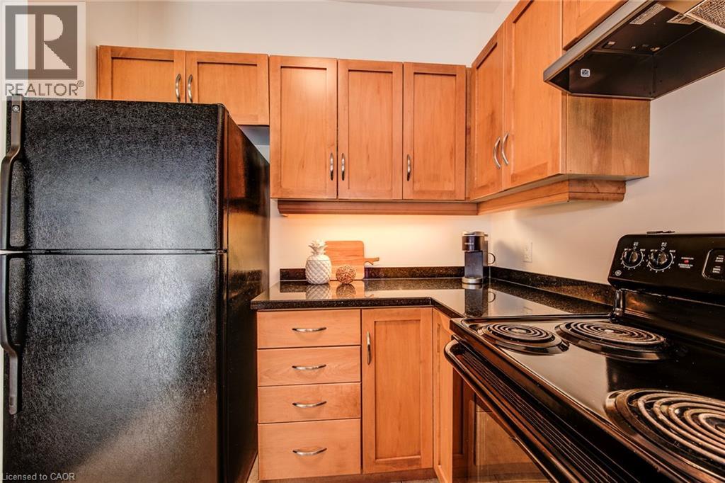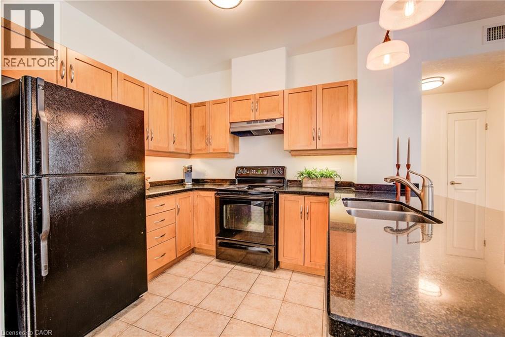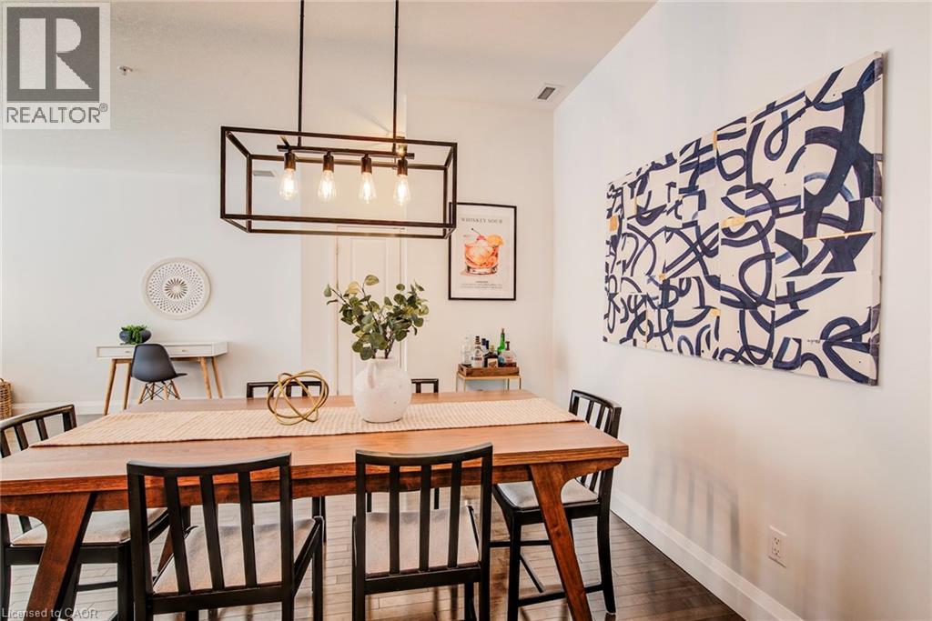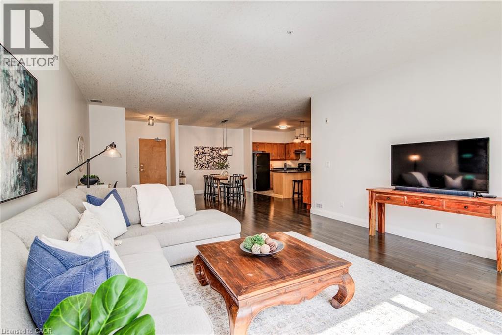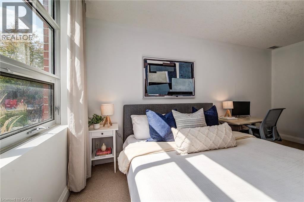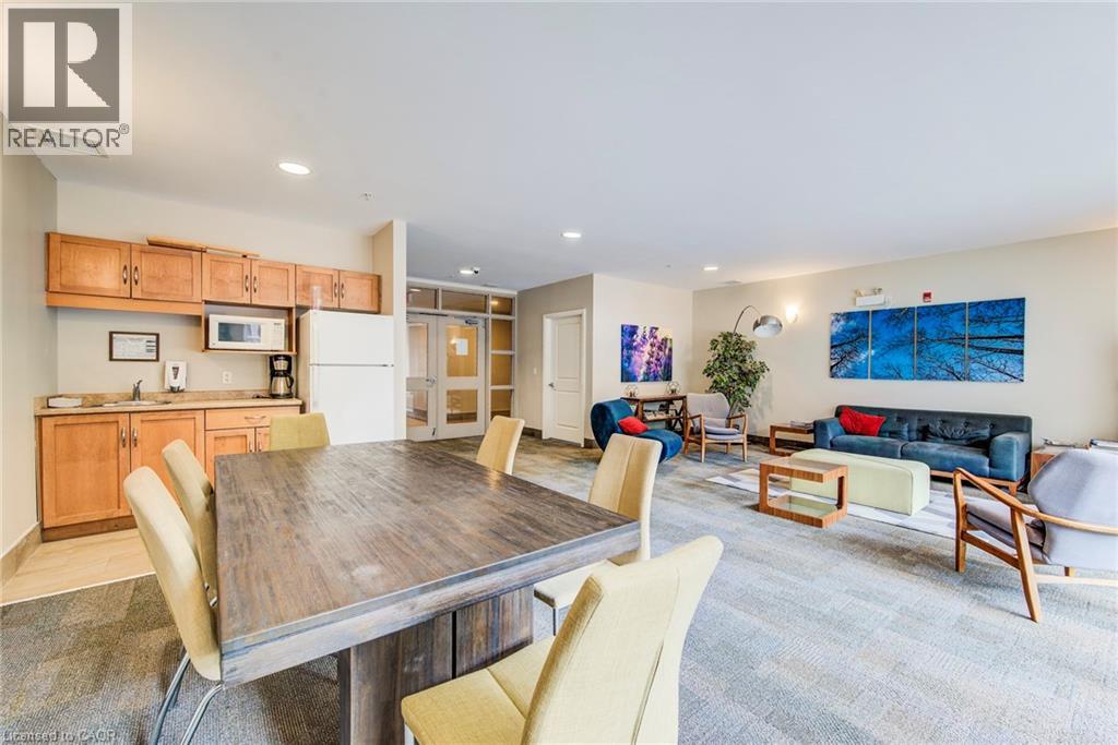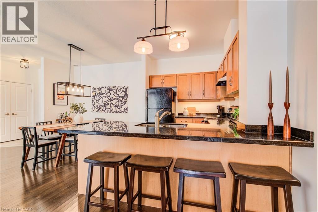 Exceptional executive condo in the sought-after Market Lofts in downtown Kitchener! Offering a care-free lifestyle with an abundance of space, this unique 1-bedroom, 1-bath is sure to impress. The updated kitchen features granite countertops, appliances, and under-cabinet lighting. A generous dining area makes entertaining easy, while the expansive living room boasts hardwood floors, and an abundance of natural light. The luxury primary suite includes a walk-in closet, warm neutral carpet, and the bathroom has a spa-like feel. The unit also has an outdoor patio off an exterior courtyard. Enjoy access to fantastic building amenities, including a private courtyard. Low condo fees cover heat, water, parking, and even window cleaning—making this a true low-maintenance lifestyle. All this in a prime downtown location just steps to the Kitchener Market, LRT, Victoria Park, Google, Communitech, shops, and restaurants. Don’t miss this rare opportunity to own a spacious loft in one of the city’s most vibrant communities! (id:20029)