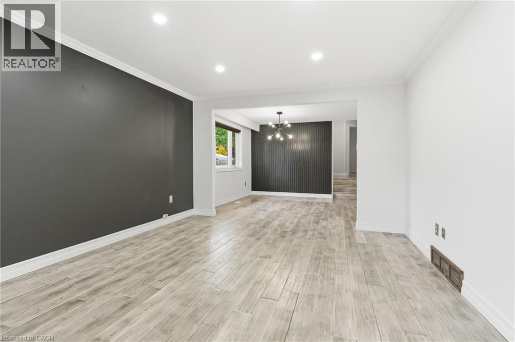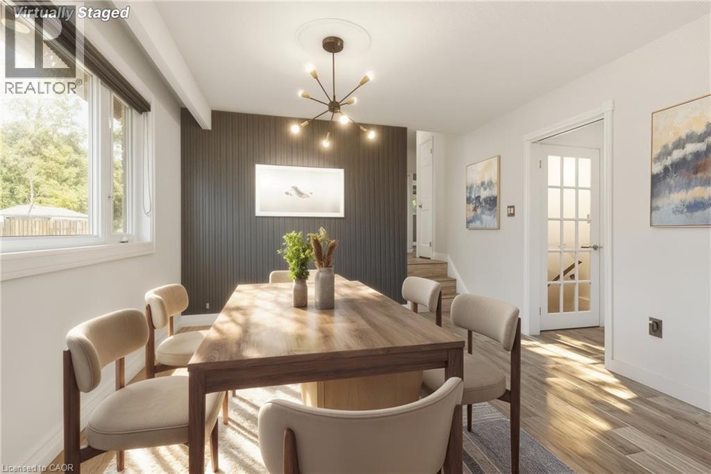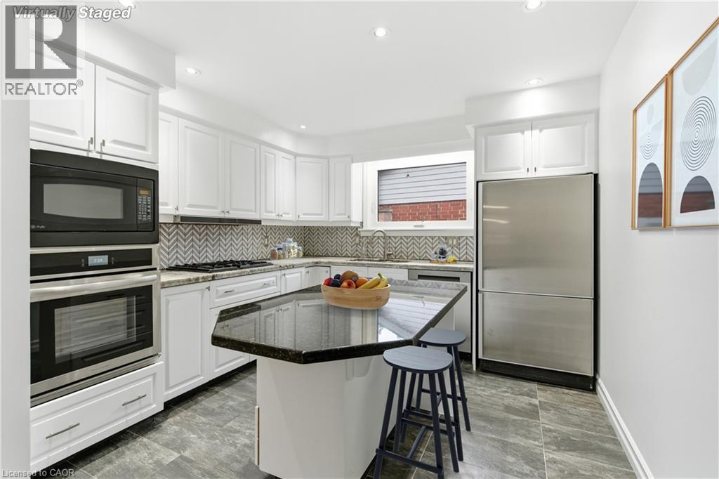 ENTIRE PROPERTY— Beautifully updated 3+1 bed, 2 bath backsplit in prime West Mountain Neighborhood. Situated on quiet cul-de-sac, minutes to Ancaster. Designed for modern living, this stylish home offers great space and versatility. Main level features bright living room, dining room and modern kitchen. 3 spacious bedrooms and 4pc bath can be found on second level. The lower level is complete with huge rec room with fireplace and built in cabinetry, 3 pc bath, bonus 4th bedroom, laundry and abundance of storage space. Convenient separate side entrance to lower level. Enjoy the fully fenced, private yard complete with gardens and deck. Ideally located close to all amenities, steps to shopping, dining, schools, parks, and transit with easy highway access. The perfect blend of comfort, style & convenience. (id:20029)