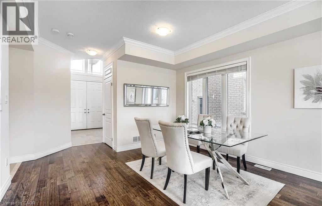 Welcome home! Sunlight fills the open-concept main floor, highlighting rich hardwood floors and a modern kitchen with granite counters, stainless-steel appliances, and a handy pantry. Upstairs, you’ll find three roomy bedrooms plus a flexible den (or optional fourth bedroom), with convenient second-floor laundry. This home offers rare privacy, backing onto a future city park, a fenced-in yard, plus a two-car garage with inside entry and two driveway spaces. You’re just minutes from the new GO station, major highways (QEW/RHVP), top schools, and everyday amenities. A stylish, move-in-ready space that feels like home right away. **Of note: the property does not include the basement but there’s plenty of living space on the main and upper floors! (id:20029)