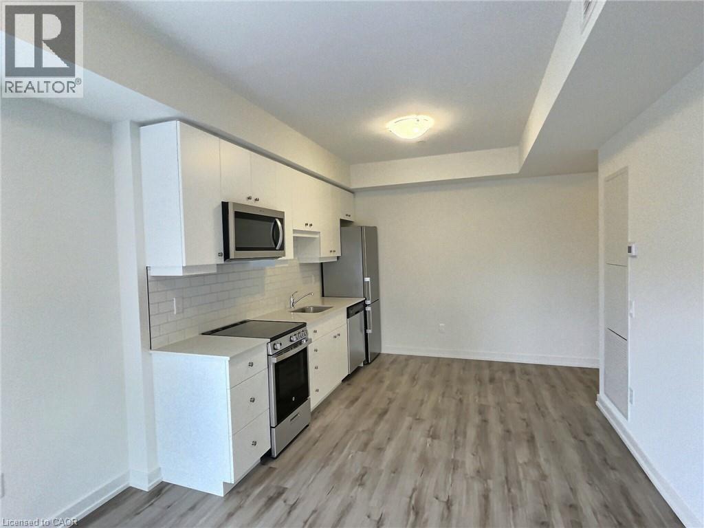 Welcome to 243 Northfield Unit 402, located in the highly sought-after Blackstone Building in an amazing neighborhood. This modern 1 bedroom, 1 bath apartment boasts 9′ ceilings and huge windows, creating a bright and spacious atmosphere. The open concept living and dining room offers a seamless flow and opens onto a large balcony, perfect for enjoying the outdoors. The contemporary kitchen is equipped with stylish white cabinetry, luxurious quartz countertops, and top-of-the-line stainless steel appliances. Upgrades throughout the unit include high-quality wood grain laminate flooring and elegant pot lights, adding a touch of sophistication to the space. Residents of the Blackstone Building enjoy a wealth of amenities designed to enhance their lifestyle. Stay fit and active in the fully equipped fitness center, host gatherings in the event/party room, and take advantage of the convenient dog wash station. The building is secured with 24/7 security and features keyless entry for added peace of mind. Additionally, residents benefit from free Rogers Ignite Internet. The property also offers a perfect mix of urban and city living with access to the Terrace & Courtyard, located on the 2nd floor of the Nord Building. This outdoor space is beautifully designed with modern furnishings, stainless steel BBQs, a gas fire pit, loungers, and dinettes, providing a relaxing environment for entertaining or simply enjoying some fresh air. Conveniently situated close to the highway, this property offers easy access to the St. Jacobs Farmers Market, a variety of restaurants, shopping centers, parks, and trails. Embrace the best of both worlds with this exceptional leasing opportunity at Blackstone Building. (id:20029)