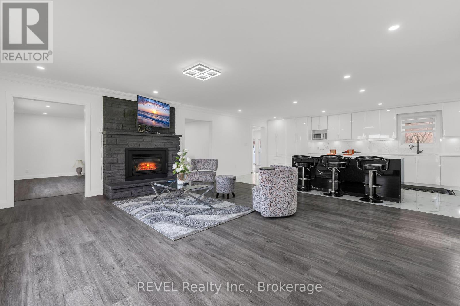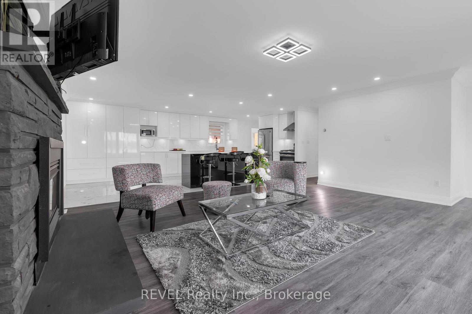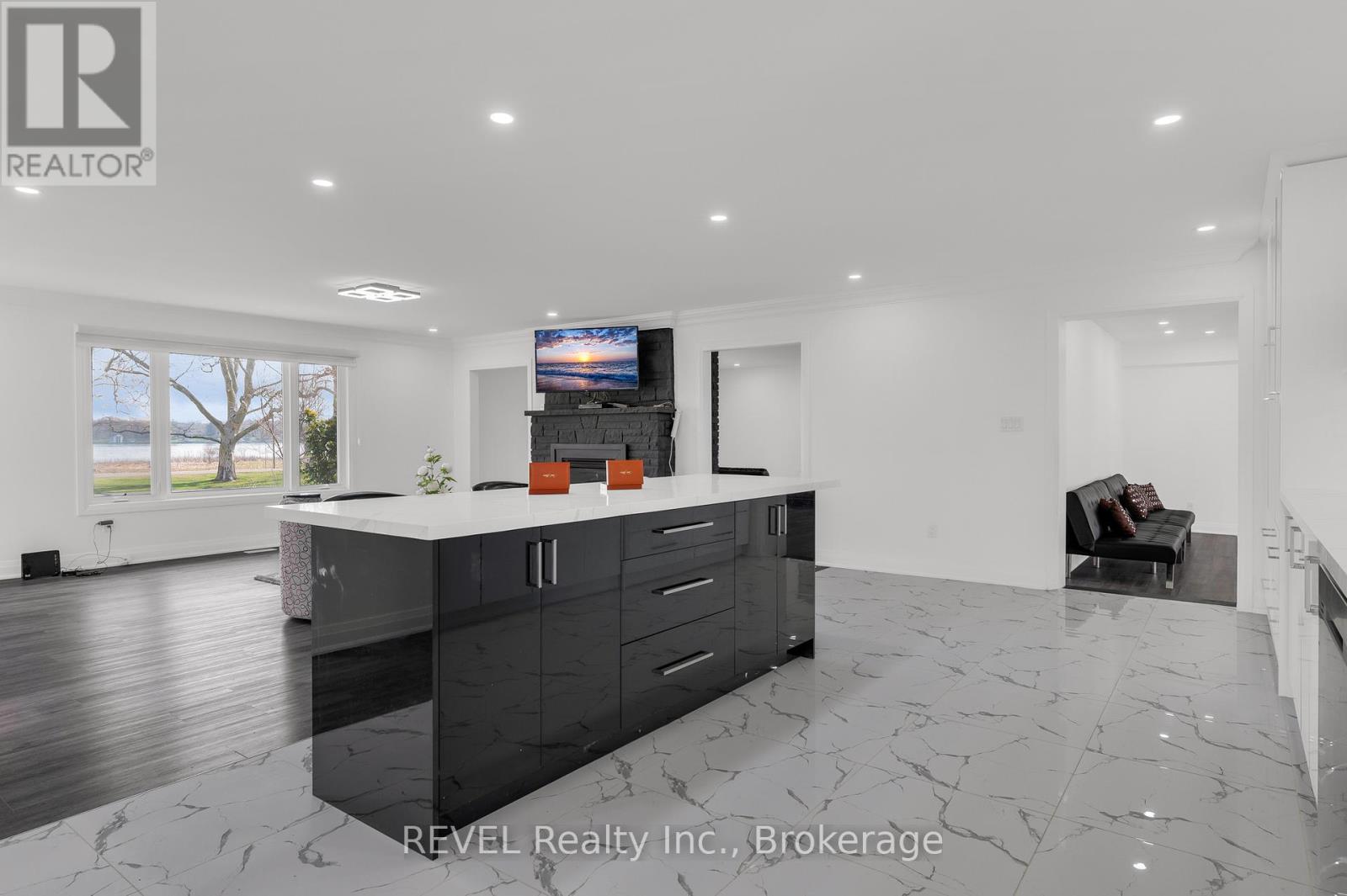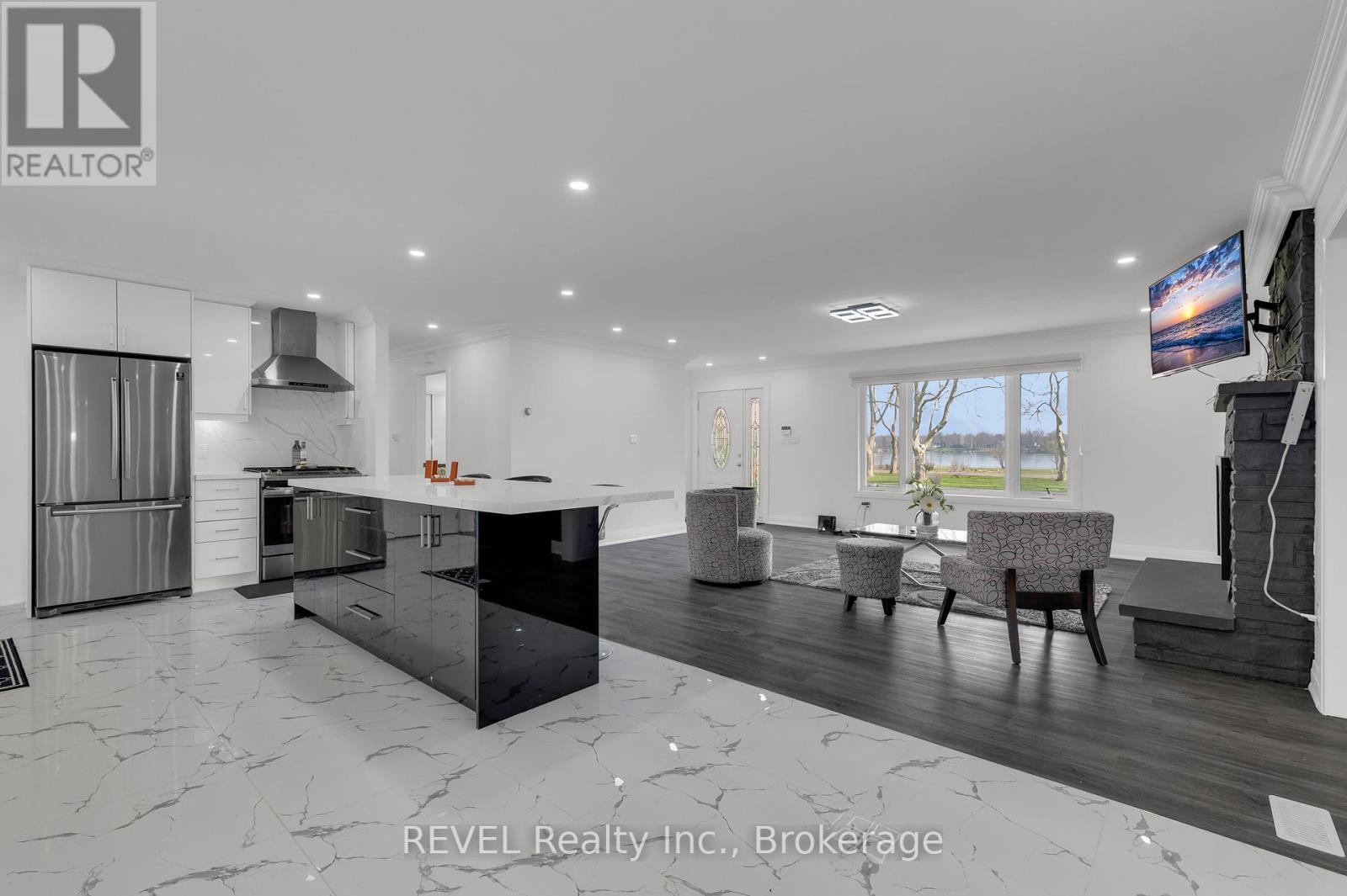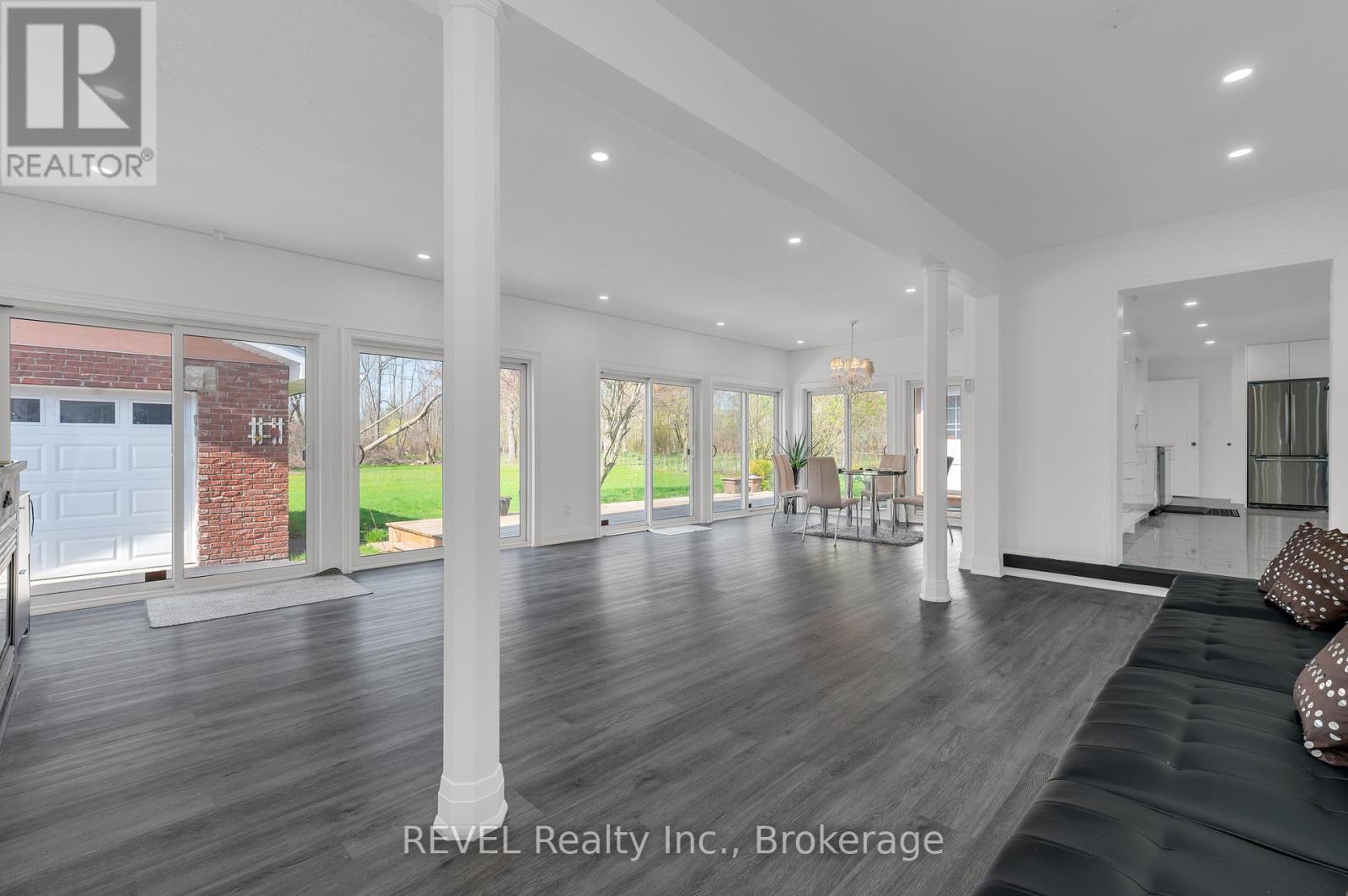 Beautifully maintained 3-bedroom, 3.5-bathroom waterfront bungalow on the sought-after Niagara Parkway. MAIN FLOOR: Open-concept living and dining area with gas fireplace and panoramic views of the Niagara River. Updated kitchen with modern appliances, island seating, and walkout to a bright sunroom with vinyl flooring and gas fireplace. Each bedroom features a private ensuite. LOWER LEVEL: Partial basement with recreation room and storage. ADDITIONAL: Fully renovated throughout with modern finishes while maintaining classic character. Forced air gas furnace, central air conditioning, and backup generator. Detached 2-car garage and large driveway with ample parking. Tenant responsible for all utilities. Furnishings available as pictured, to be agreed upon between landlord and applicant. (id:20029)