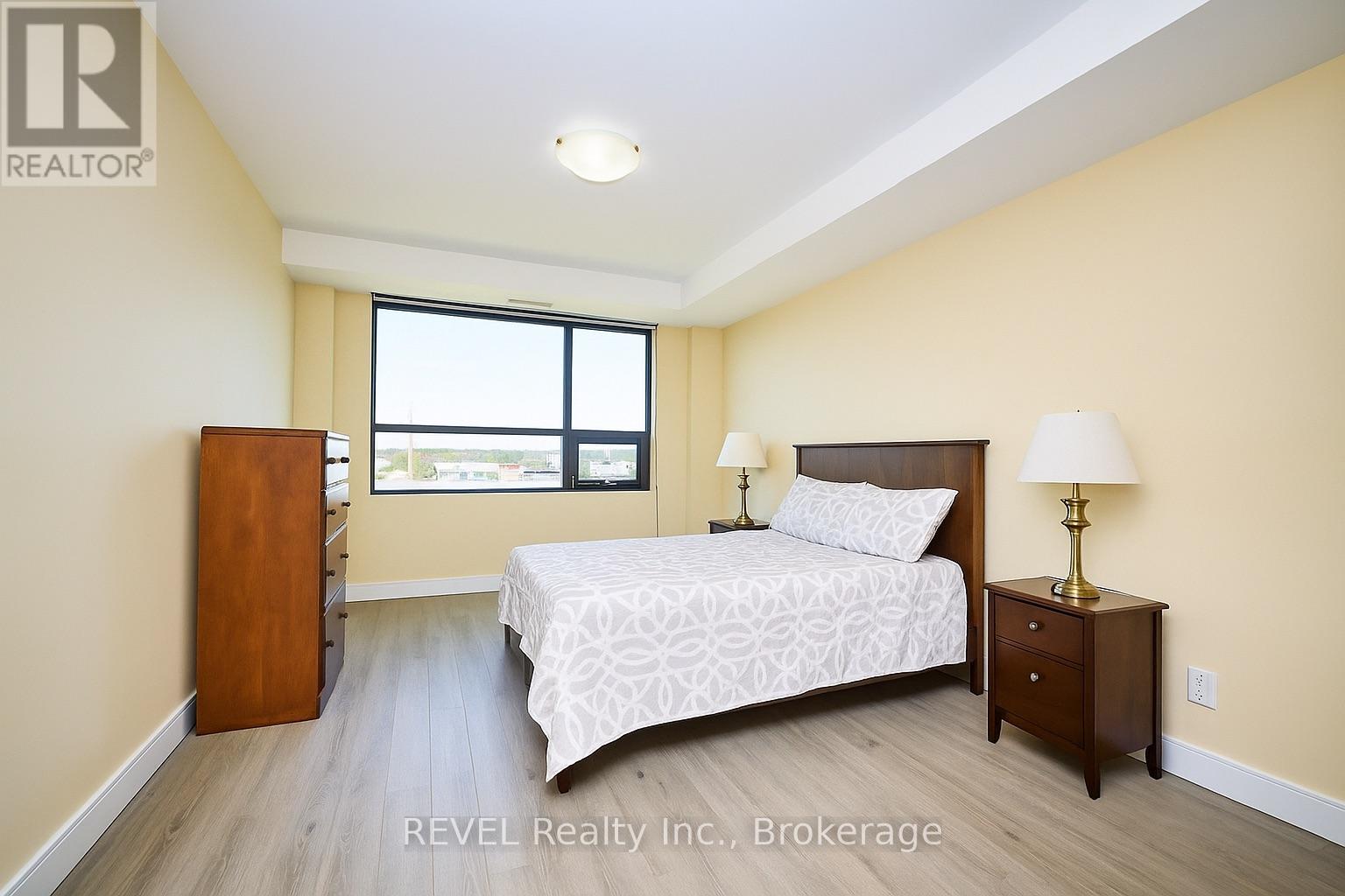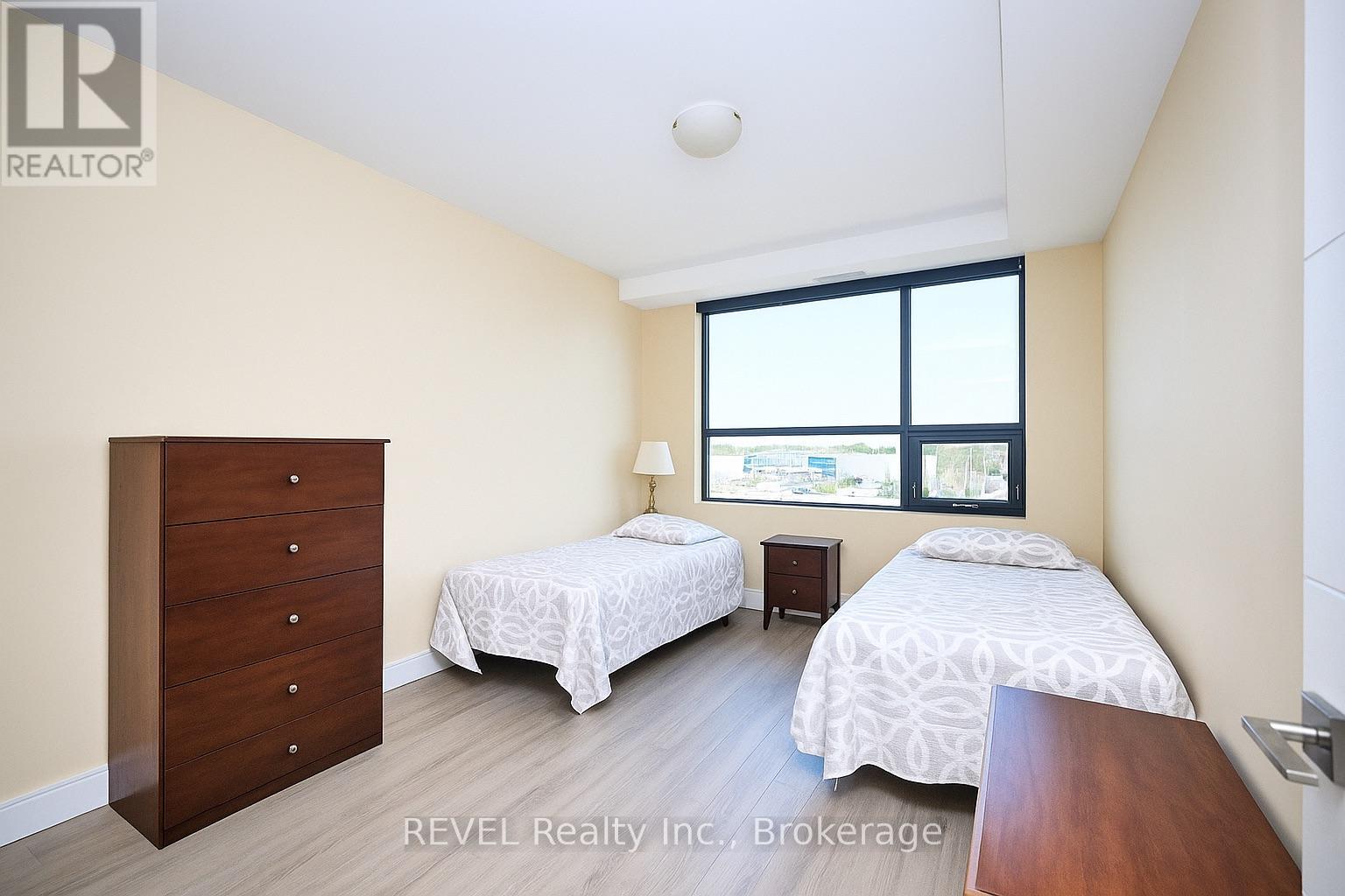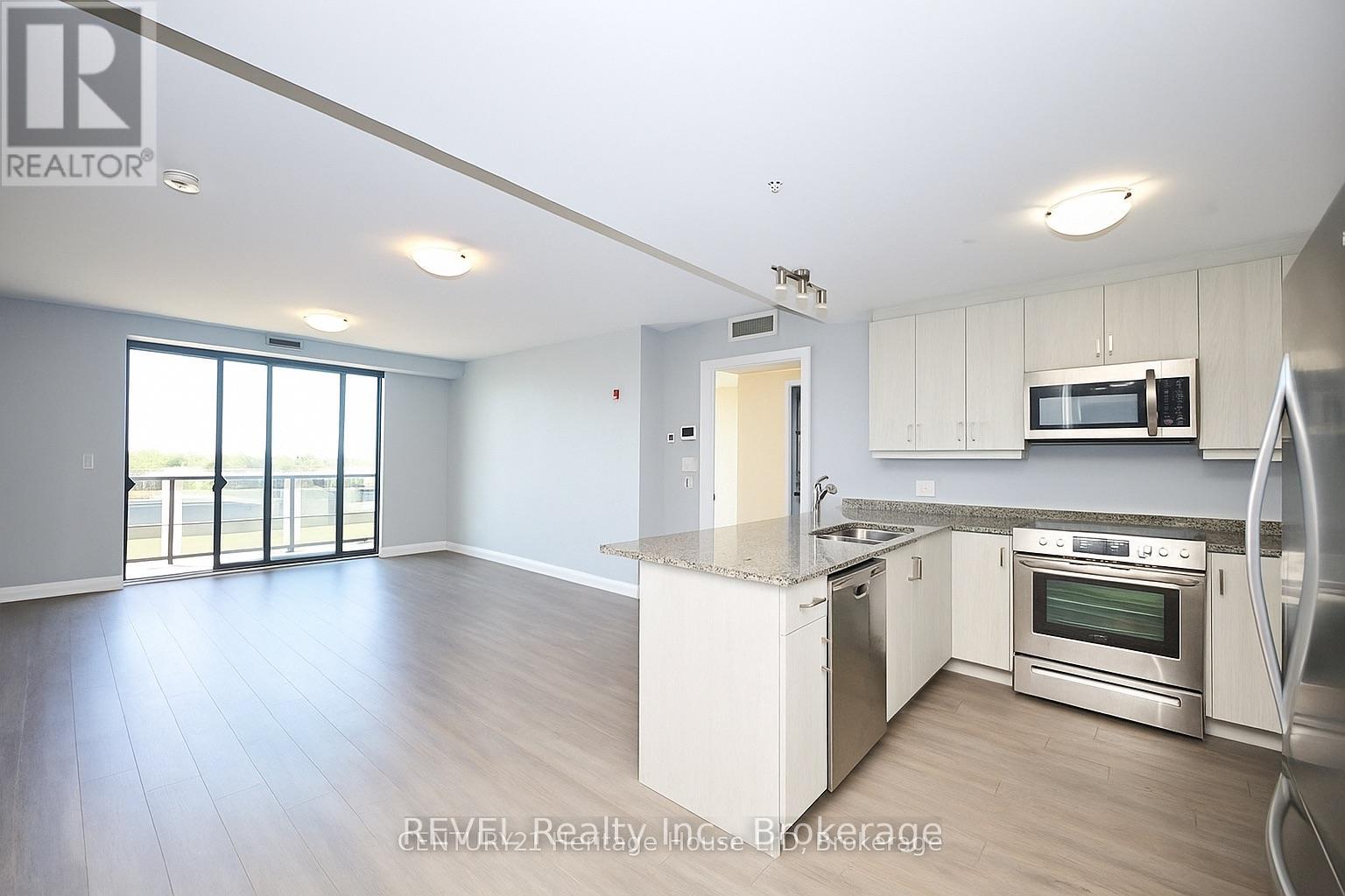 Elevated living in this executive two-bedroom corner suite, in high desirable area of St.Catharines. Unit offers a desirable north-east exposure with abundant natural light throughout the day. Open-concept layout showcases a modern kitchen with high-end stainless steel appliances, granite countertops, and luxury plank flooring that extends through the principal living areas. Primary bedroom features a 3-piece ensuite with a walk-in glass shower, while the second bedroom provides flexibility for guests or a home office, complemented by a 4-piece main bath. Additional highlights include in-suite laundry, open balcony, ample storage, and sleek, contemporary finishes throughout. Residents of this sought-after building enjoy premium amenities such as a fitness room, secure entry, underground parking, and access to a shared rooftop patio and party room with the adjoining twin building. Steps from shopping, dining, and major highways, and directly across from the St.Catharines hospital, this corner condo combines convenience, comfort, and sophistication. (id:20029)