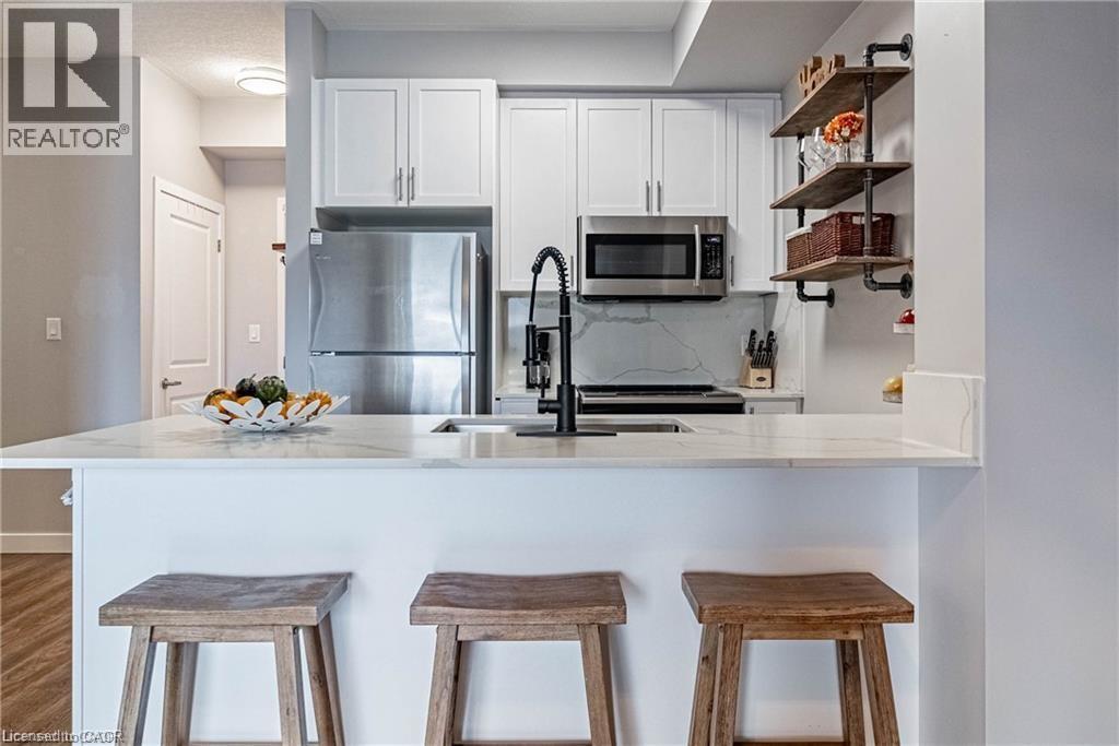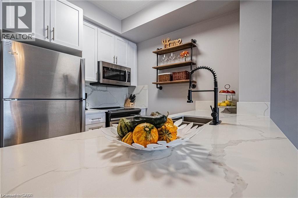Welcome to Waterfront Trails, a Boutique Building located feet from Lake Ontario. This very well maintained building has a party room and workout room both looking out to the lake. There is also a large Rooftop Terrace with lots of lounge chairs and amazing views of the Lake and the Escarpment. This third Floor unit is just under 700 Sqft open concept 1 BED with spacious DEN and large primary bedroom with Walk-in closet. The Den is great for an office, private sitting area or even a guest suite. There is also a 4 piece bath and ensuite laundry. The Balcony offers great views of the Escarpment and Sunsets. The exterior of the Building is very well Kept with beautiful gardens and sitting areas .There is quick access to a beach and trails. Do not miss out on these beautiful views and the opportunity to live on The Lake!! Underground parking spot included and private Storage Locker. Extra parking spots available for rent. (id:20029)