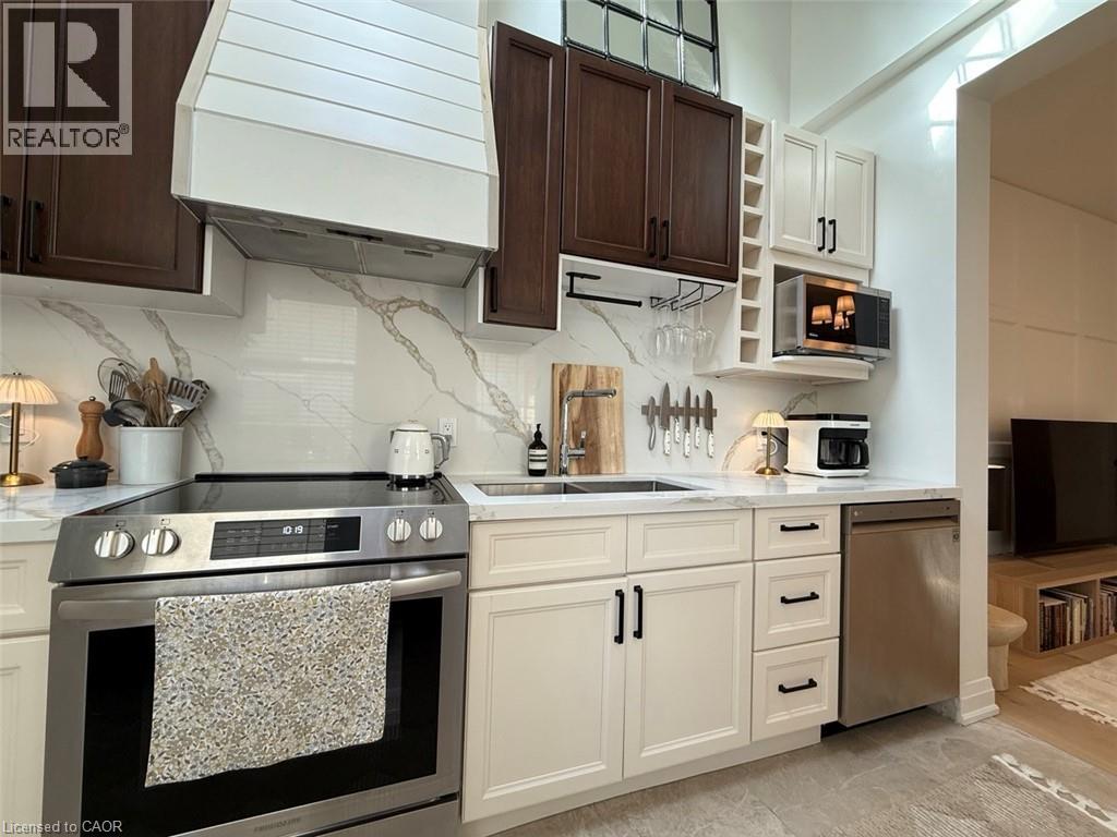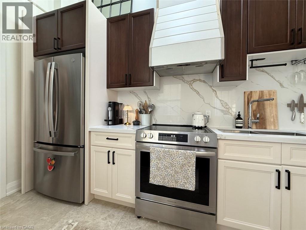 Discover upscale living in this beautifully finished one-bedroom suite offering approximately 658 sq. ft. of luxury and comfort in the heart of West Galt. Just a short walk to the Gaslight District, Mill Race Park, local boutiques, bakeries, and fine dining, this is urban luxury with a modern design. Key Features That You’ll Love: Gourmet Kitchen: Granite counters, endless storage, full-size stainless appliances, and plenty of prep space for dinner parties or your next TikTok cooking moment. Spacious + Stylish: Soaring 10-ft ceilings, rich wood floors, and an open-concept living room that’s perfect for entertaining or binge-watching your favourite show in style. Spa-Inspired Bathroom: Relax and recharge in your luxury bathroom with high-end fixtures and hotel-worthy design. Two Private Entrances: Enjoy both a private porch and front entry, plus direct access to a large shared patio and fenced backyard; ideal for summer hangouts, entertaining or your morning coffee. Bonus Space: Includes a storage unit, in-suite laundry, and one parking spot included with the opportunity to rent other spots (a rare find downtown!). Peace of Mind: Controlled entry with security features for added comfort. Tenant Pays: Heat, hydro, gas, and water. Located within walking distance to the vibrant Gaslight District and all the amenities of downtown, this property offers a rare blend of privacy, sophistication, and urban accessibility. Ready to experience luxury living in Galt’s most walkable neighbourhood? Call to book your private showing today. (id:20029)