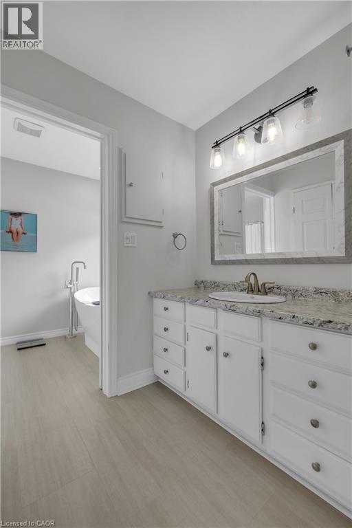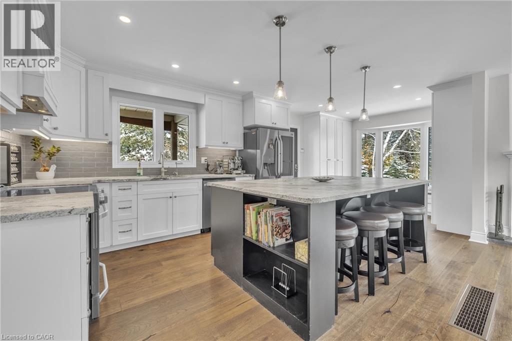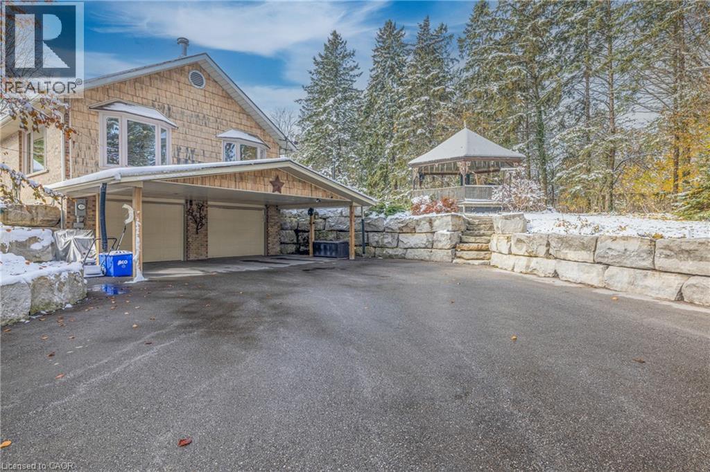 As you drive up the lane, you will be impressed by the space and tranquillity of this private 3 acre estate. The 1880 sf Bungalow with 3+1 Bedrooms and 3 full bathrooms is well updated throughout. The stunning kitchen overlooking the dining area with seating by the fireplace has a large island with seating, leathered granite, distressed cabinets, lots of drawers/pullouts, large pantry cabinets and a separate entrance to a great bbq patio. Engineered hardwood throughout the main floor, living room w/ vaulted ceiling & XL patio doors offering a stunning view and leads to the large composite deck with built in hot tub. A sun filled house with oversized windows throughout and many high quality energy efficient Tripple Pane windows with built in pull-down screens. King size primary bedroom with door access to the deck and his/her closets. A large en-suite with soaker tub, and separate shower. 2 other bedrooms are a good size. 4pc bath & laundry finish the main floor. The basement is finished with a rec-room, office space and additional bedroom/office/games room + 3pc bath, utility space with storage & access to the garage. Dbl car garage and car port. Expansive yard with plenty of space for playing, gardening, hanging out… Beautifully landscaped. Fruit trees and vegetable garden. Paved driveway and a parking area that has plenty of room for all of your vehicles, toys, trailers, etc. If you are looking for country living on the outskirts of this picturesque town of Beechville then this is the one for you. 9 min to 401. Grass cutting and driveway snow removal included. (id:20029)