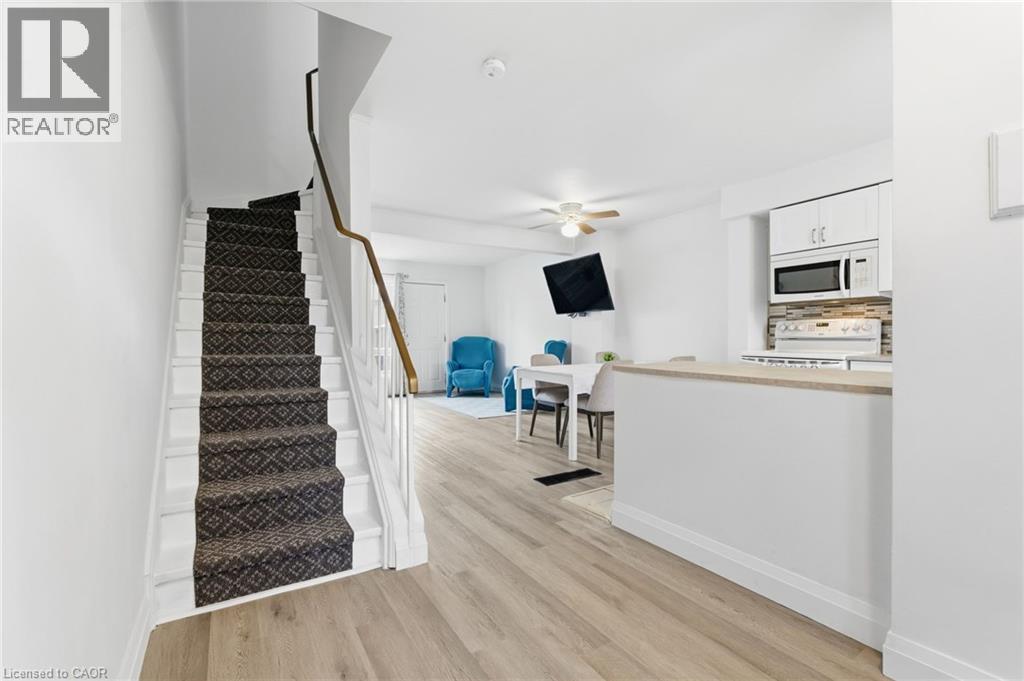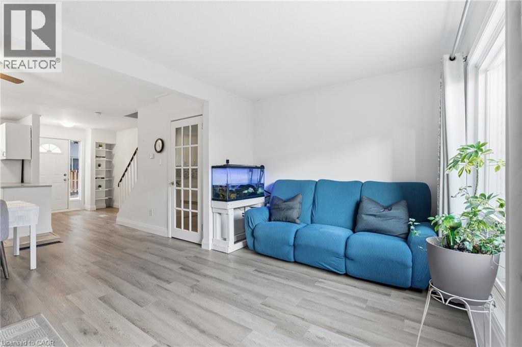 ENTIRE PROPERTY— Welcome to 496B Grey Street, a rare 4-bedroom condo townhouse in Brantford’s sought-after Echo Place neighbourhood! This move-in ready home has been beautifully refreshed with new flooring throughout, fresh paint, and an updated kitchen, offering a modern feel the moment you walk in. The open-concept main floor seamlessly connects the kitchen, dining, and living areas, making it the perfect space for family gatherings or entertaining friends. A walkout leads to your own fenced-in private backyard, ideal for kids, pets, or summer BBQs. Upstairs, you’ll find four generously sized bedrooms, a rare find in this price point, along with two full bathrooms. The partially finished basement adds even more living space, with a convenient powder room and potential for a rec room, home office, or workout area. Located in a quiet, family-friendly community, this home offers the best of convenience and comfort. You’re just minutes from the 403, shopping, schools, parks, and all the amenities Brantford has to offer. (id:20029)