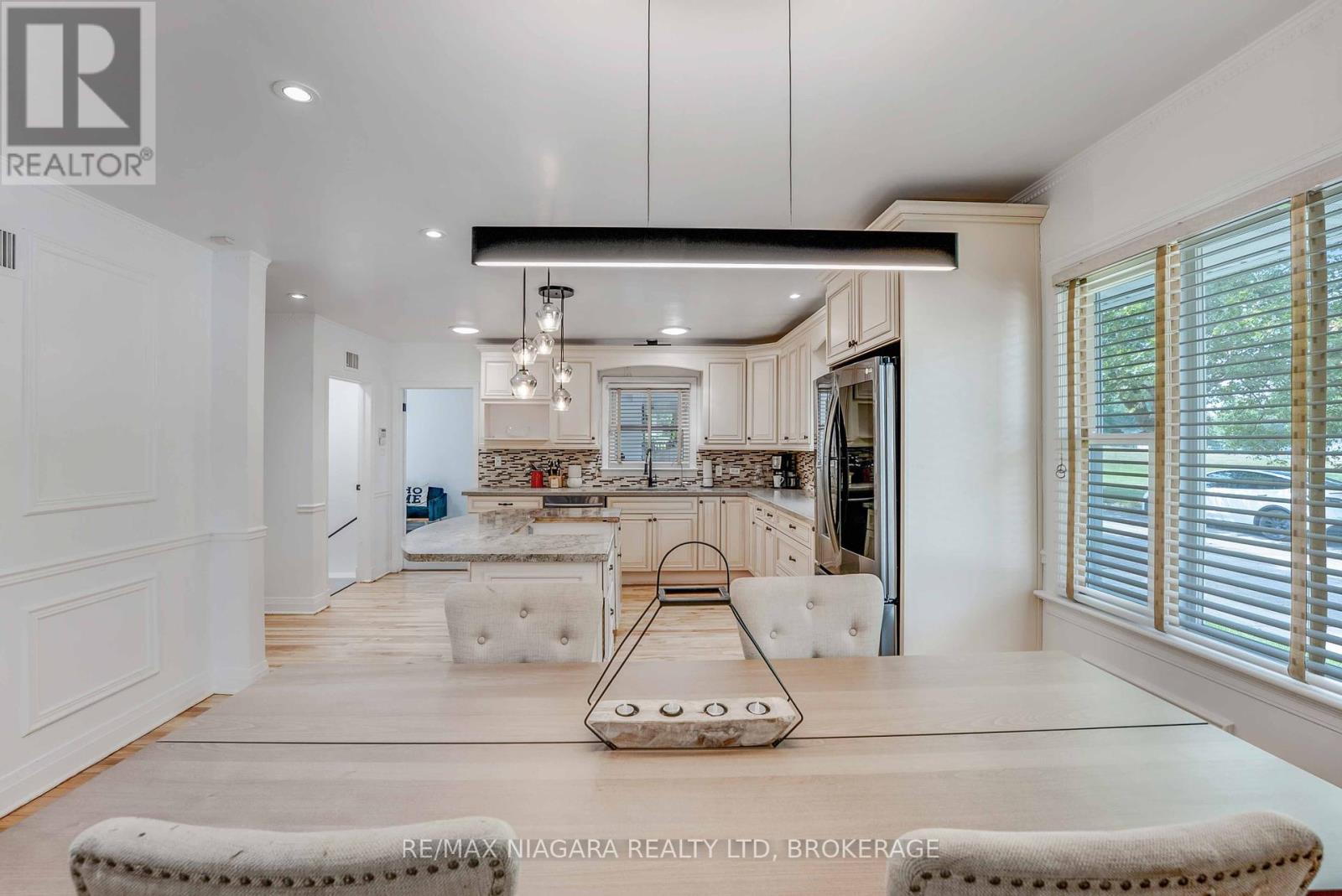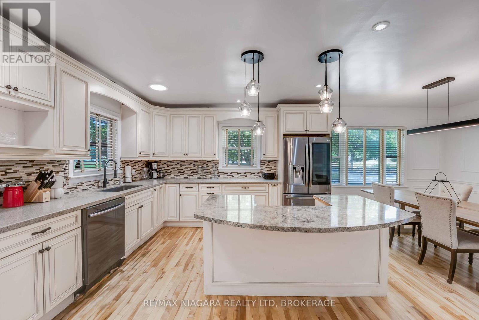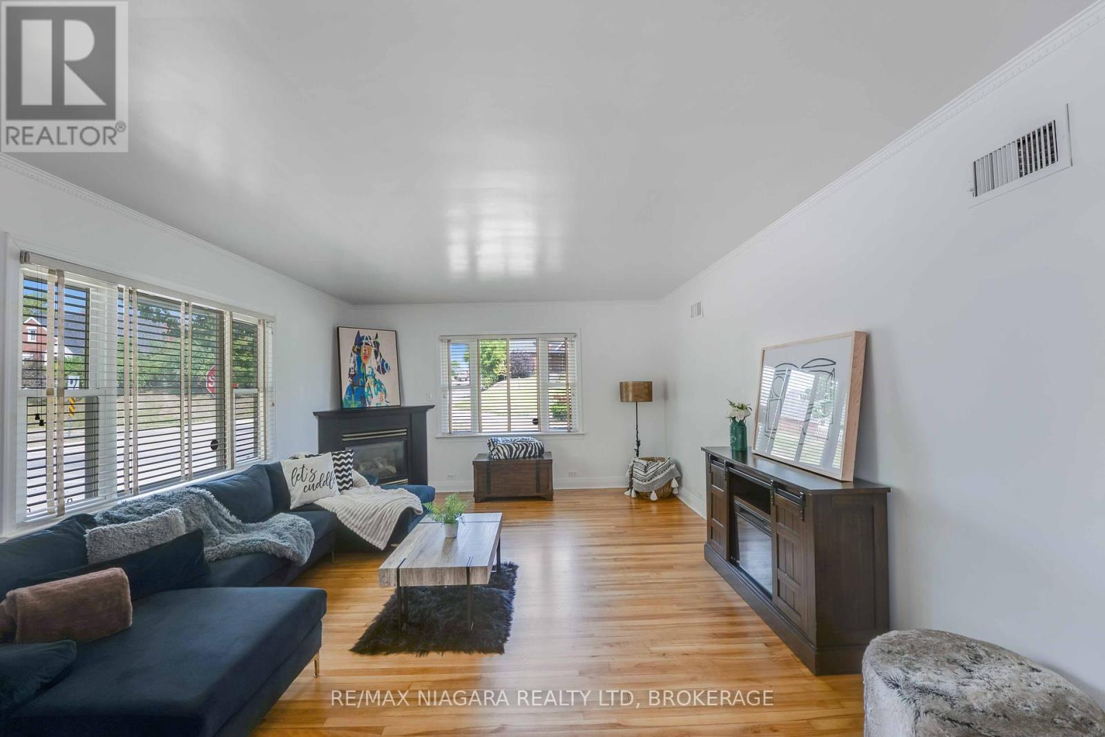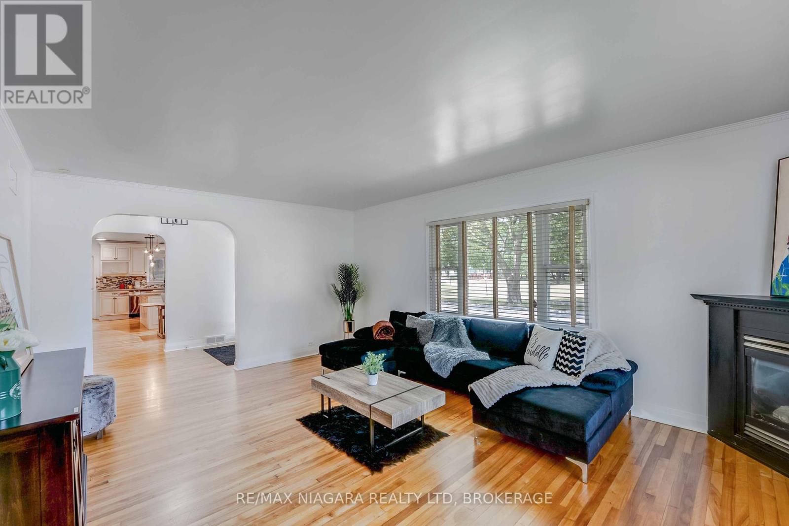 Prestigious Bungalow in Prime Niagara Falls Location. Situated directly across from the Municipal Pool and Splash Pads, this distinguished 1,600 sq. ft. fully finished turn key bungalow is one of the cities most recognizable residences. The home features four generously sized bedrooms, two full bathrooms, and an open-concept kitchen and dining area enhanced with quartz countertops, a floating island, and abundant cabinetry. The living room and fully finished recreation room each boast a gas fireplace, creating warm and inviting spaces. A bright sunroom seamlessly connects the home to the garage and opens through French doors to a large stamped concrete patio and an oversized storage shed. Exceptional curb appeal, a sought-after location, and a thoughtfully designed layout make this an outstanding opportunity in the heart of Niagara Falls just steps away from Valley Way Public School and St. Patrick’s Catholic Elementary School and surrounded by amenities. (id:20029)