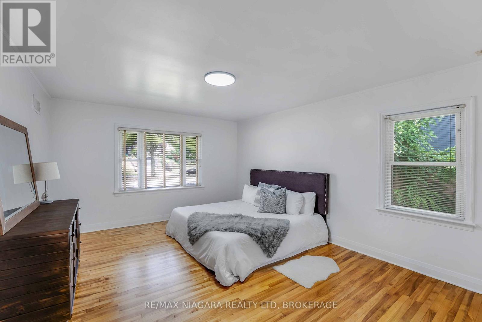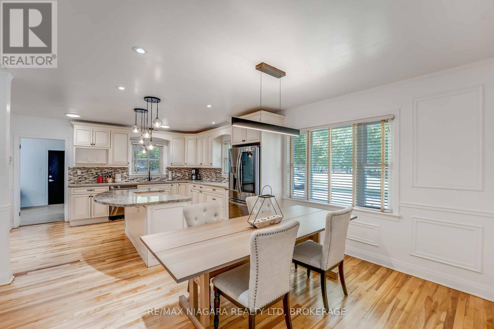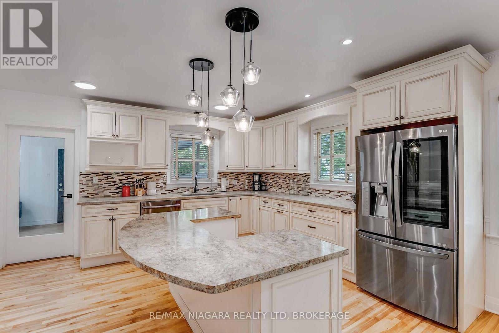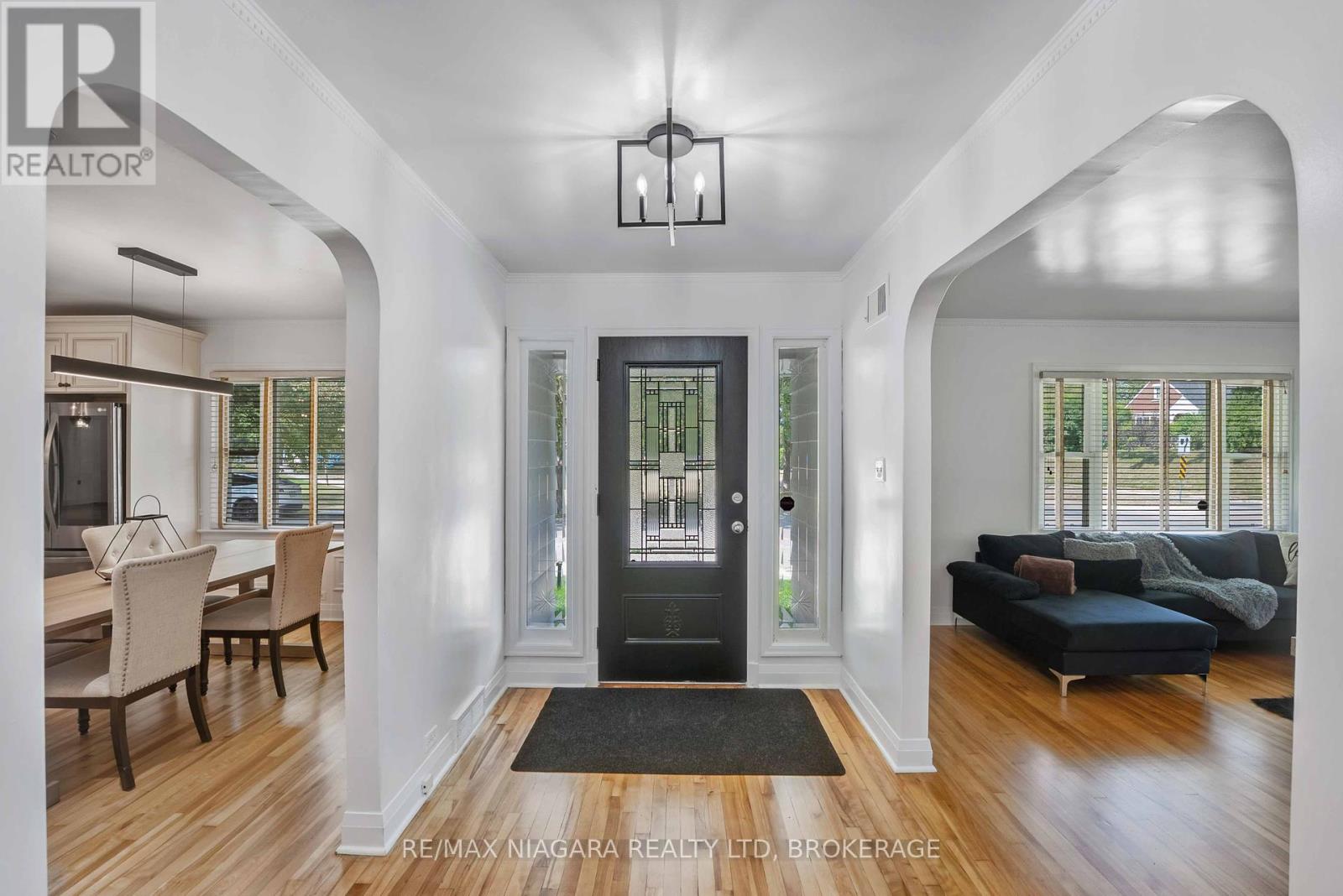 Prestigious Bungalow in Prime Niagara Falls Location. Situated directly across from the Municipal Pool and Splash Pads, this distinguished 1,600 sq. ft. fully finished turn key bungalow is one of the cities most recognizable residences. The home features four generously sized bedrooms, two full bathrooms, and an open-concept kitchen and dining area enhanced with quartz countertops, a floating island, and abundant cabinetry. The living room and fully finished recreation room each boast a gas fireplace, creating warm and inviting spaces. A bright sunroom seamlessly connects the home to the garage and opens through French doors to a large stamped concrete patio and an oversized storage shed. Exceptional curb appeal, a sought-after location, and a thoughtfully designed layout make this an outstanding opportunity in the heart of Niagara Falls just steps away from Valley Way Public School and St. Patrick’s Catholic Elementary School and surrounded by amenities. (id:20029)