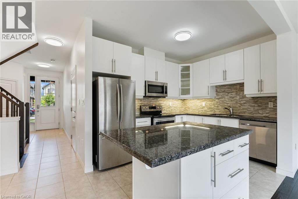 Executive end unit townhome in Ancaster! This spacious home offers a bright open-concept layout with oversized windows and plenty of natural light throughout. The main level features a modern kitchen with granite countertops, brand new fridge and stove, a large island and hardwood floors, all complimented by soaring 9 ft ceilings. Upstairs, you’ll find 3 bedrooms, including a primary suite with ensuite bath, plus the convenience of a second-floor laundry room. Tucked away in a quiet and family-friendly neighborhood, just minutes from schools, shopping, restaurants, Hamilton Golf & Country Club, Highway 403 & transit to McMaster & Redeemer Universities. Note: Long driveway parking for 2 cars and the garage (total 3 parking spaces). Fully fenced spacious back yard. rent +all Utilities +hot water tank rental. requires Rental application ,single Key ,Id ,job letters, 4 pay stabs, ( Single Key will be done at the end just to verify all information.) (id:20029)