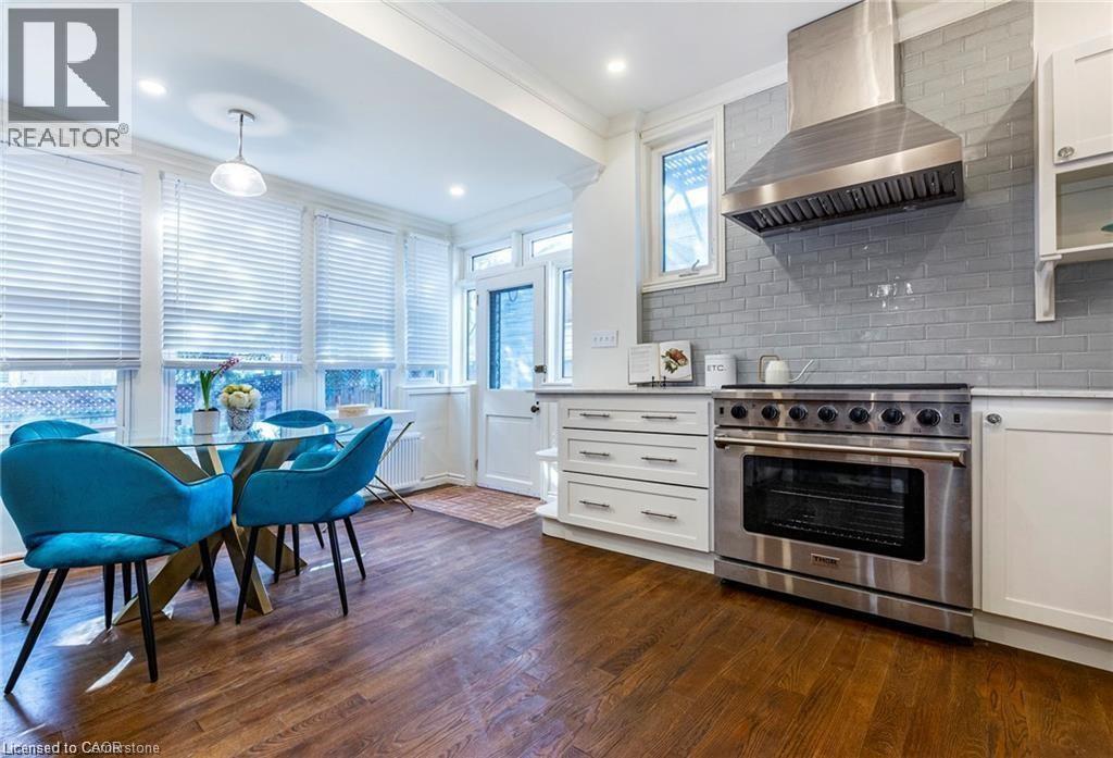 Welcome to this thoughtfully restored home in Hamilton’s desirable Gibson South neighbourhood. Blending historic character with modern updates, this property features original woodwork, banisters, and stained-glass windows. The main floor unit offers a bright eat-in kitchen with stainless steel appliances and a large gas burner stove. Original hardwood flooring runs throughout, complementing the spacious living area and generously sized primary bedroom. A second bedroom offers flexibility for use as a home office or guest room. The unit also enjoys exclusive access to the backyard, ideal for outdoor enjoyment. Conveniently located near schools, shops, restaurants, public transit, and with easy access to major highways, this home offers a rare opportunity to enjoy classic charm in a well-connected urban setting. (id:20029)