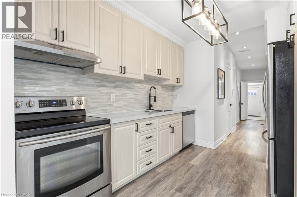 Beautifully renovated detached home in Hamilton’s sought-after Crown Point neighbourhood. This bright and spacious 3-bedroom, 3-bathroom home offers modern finishes and thoughtful updates throughout. The main floor features a combined living and dining area with abundant natural light. The contemporary kitchen has quartz countertops, ceramic tile backsplash, stainless steel appliances, and ample cabinetry. Just off the kitchen, there is a versatile flex space, ideal for a family room or breakfast area. From here, walk out to the deck and patio overlooking the low-maintenance backyard. This level also includes a convenient 3-piece bathroom and laundry. Upstairs, you’ll find two bedrooms, one with a studio kitchen. There is a bright 4-piece main bathroom. The finished lower level provides a generous recreation room, an additional 4-piece bathroom, and a utility room. This carpet-free home includes vinyl, laminate, and ceramic flooring throughout. Street permit parking only. Just steps from the trendy shops and restaurants of Ottawa Street. Tenant pays hydro, water, and natural gas. (id:20029)