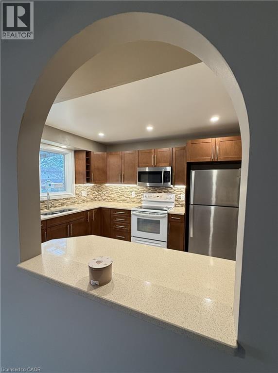 Discover the charm of small-town living at 88 Conestoga Road in beautiful New Hamburg! This well-kept semi-detached home offers over 2,000 sq. ft. of finished living space, featuring four spacious bedrooms and a welcoming atmosphere throughout. The open-concept main floor is perfect for entertaining, with a bright kitchen offering ample counter and cupboard space for the chef in your family. The living and dining areas flow seamlessly to a large covered deck and a generous backyard — ideal for family gatherings and summer barbecues. Downstairs, you’ll find a cozy finished basement complete with a corner gas fireplace — the perfect space to relax or host guests. Upstairs, the impressive primary suite addition over the garage features a vaulted ceiling, walk-in closet, and private 2-piece ensuite. Three additional bedrooms and a 4-piece family bathroom complete the upper level. Enjoy the outdoors with a large backyard and storage shed, offering plenty of room for everyone. Additional highlights include an attached garage with opener, central air, and a water softener. Ideally located close to Hwy 7/8 for easy access to Kitchener-Waterloo and Stratford, this home is near schools, parks, shopping, restaurants, and the scenic Mike Schout Wetlands. Come experience the perfect blend of comfort, convenience, and small-town charm — welcome home to 88 Conestoga Road. (id:20029)