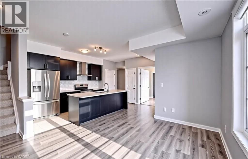 Available from December 16th! Welcome home to a bright and spacious multi-level end-unit townhome with sweeping views from two private walkout balconies. Located in the heart of Wallaceton in Huron Village, this is a community that perfectly balances urban convenience with a warm, neighbourhood feel—parks, trails, shopping, and everyday essentials are all just moments away. This modern Turquoise Urban Town model by Fusion Homes offers thoughtful design and premium finishes throughout. The main living space flows seamlessly to a generous balcony, ideal for morning coffee or evening wind-downs. Upstairs, you’ll find two well-appointed bedrooms, including a primary retreat with its own private balcony, a 3-piece ensuite, and a 4-piece family bathroom. A convenient stacked laundry set is located on the bedroom level for effortless day-to-day living. Step outside and you’re immediately immersed in one of Kitchener’s most desirable master-planned communities. Backing directly on to the park! Enjoy peaceful trails and green spaces, explore local boutiques and cafés, or take advantage of the sports fields, splash pad, and recreational amenities at RBJ Schlegel Park directly across the street. A brand-new elementary school is also coming to the neighbourhood, making this an ideal place to settle in and grow. With your parking spot right at your door and quick access to Highway 401 and Highway 7/8, this location is as practical as it is inviting. Wallaceton offers the best of both worlds—connected city living in a setting that truly feels like home. Retail plaza is also just steps away which contains Starbucks, Longo’s Super Market, Shoppers Drug Mart, and much more! (id:20029)